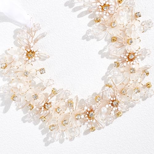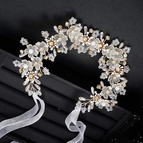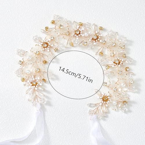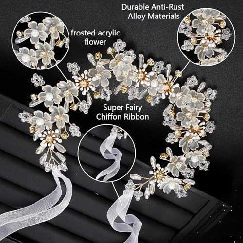 Flower Princess Headpiece, Pearl Bridal Hair 1 Count Pack of 1 Gold Flower
