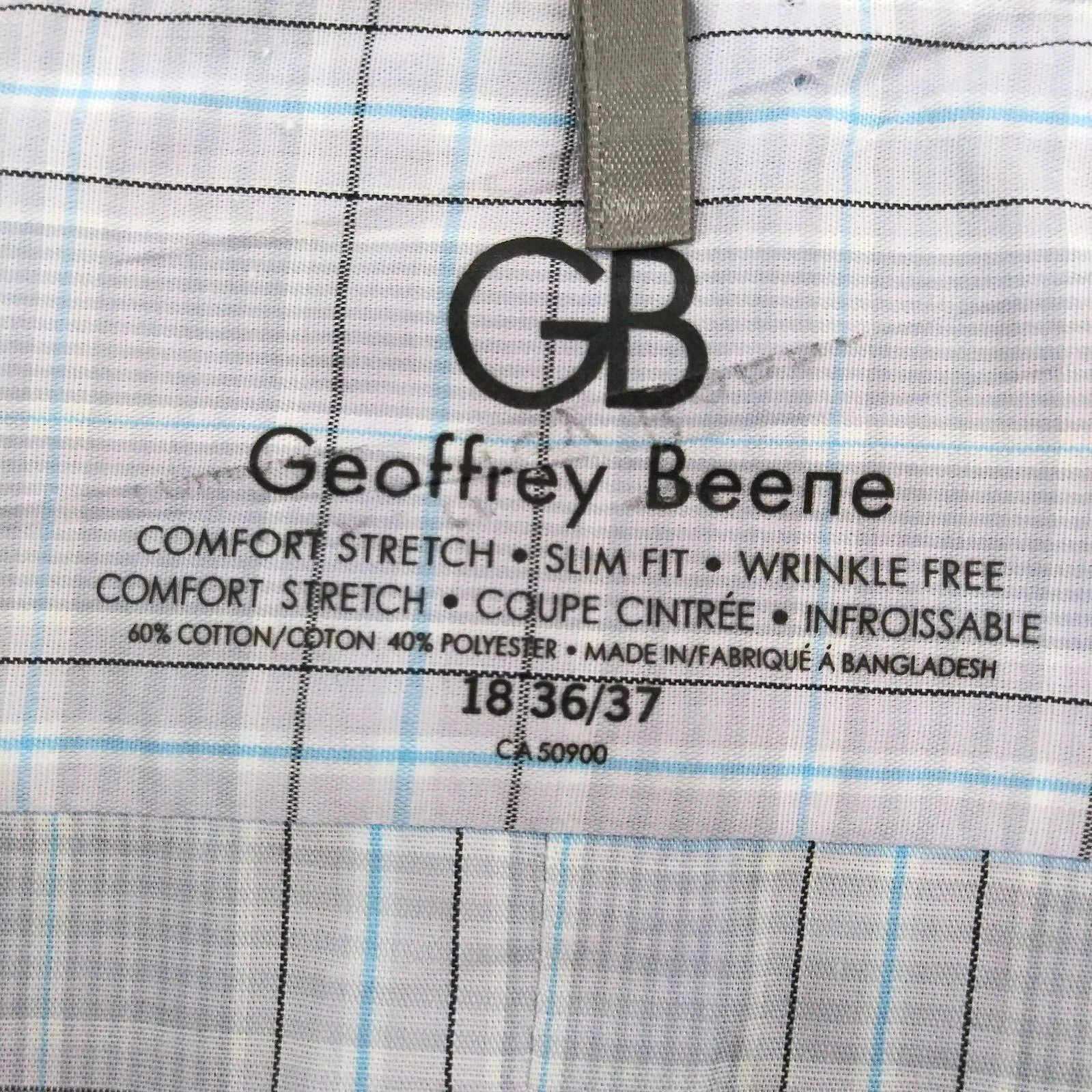 как выглядит Geoffrey Beene Dress Shirt Size XXL Gray Slim Fit Check Long Sleeve Button Up фото