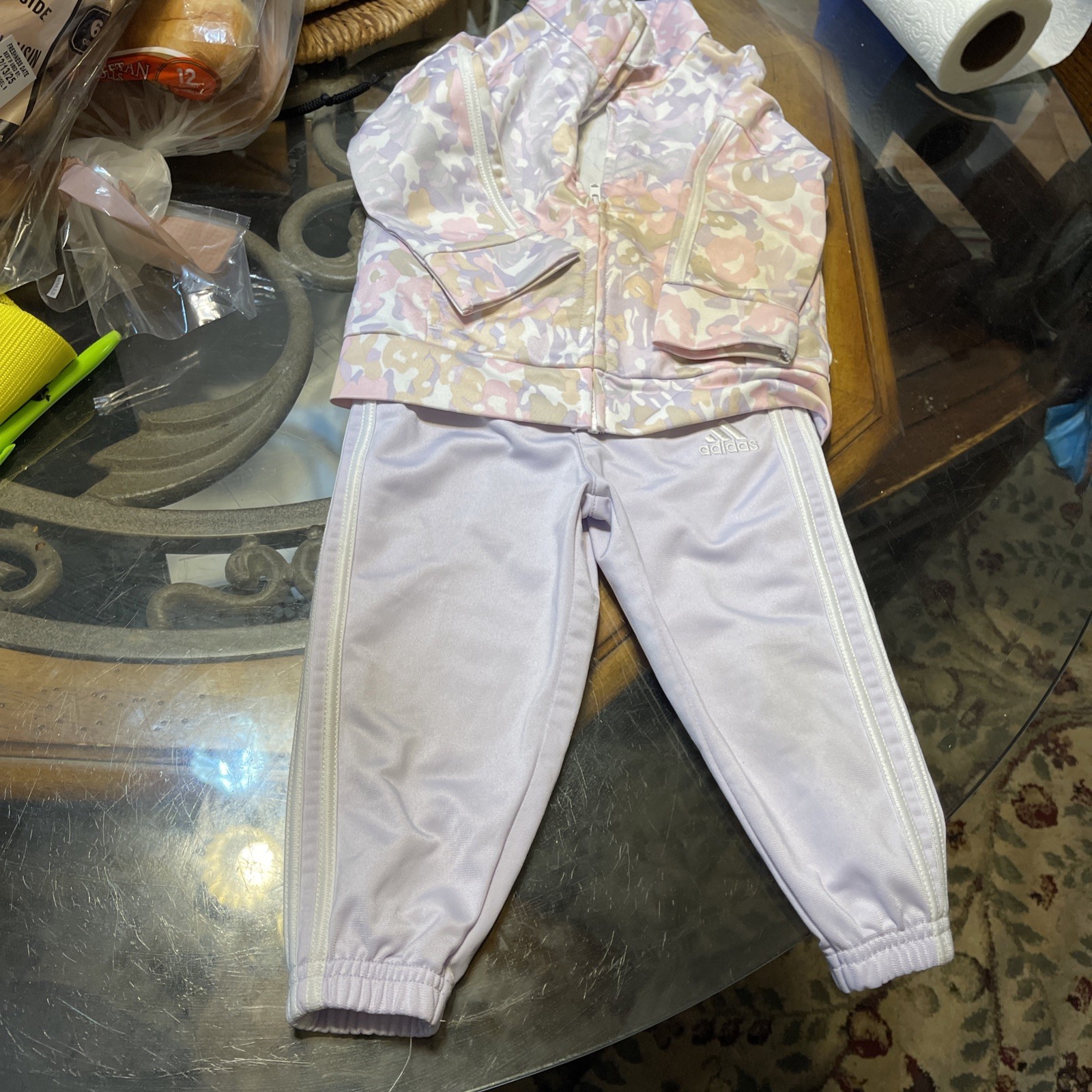 как выглядит Adidas Girls Jacket/Pants Set Size 12 months Camo Print Full Zip Pockets Used фото
