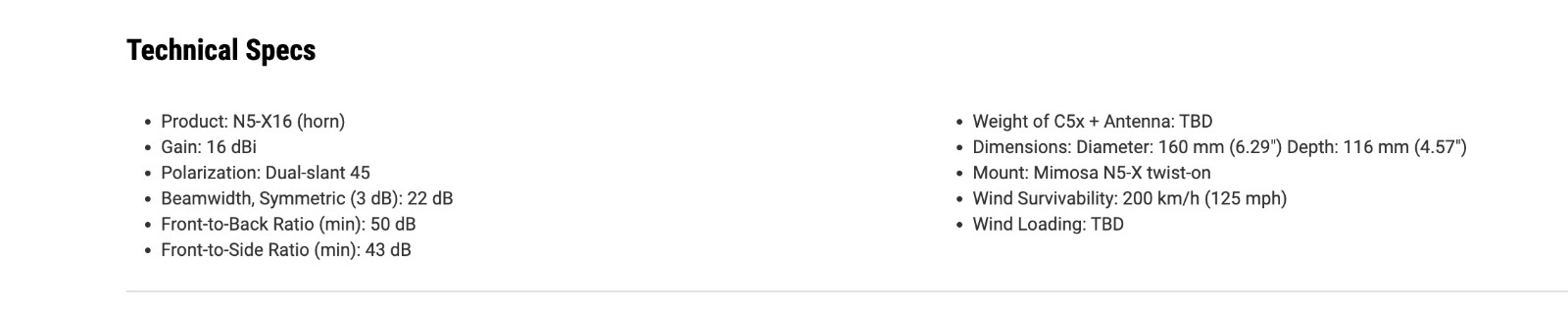 Lot of 2: N5-X16 Mimosa Networks 4.9-6.4GHz 150mm Horn Antenna for C5x used