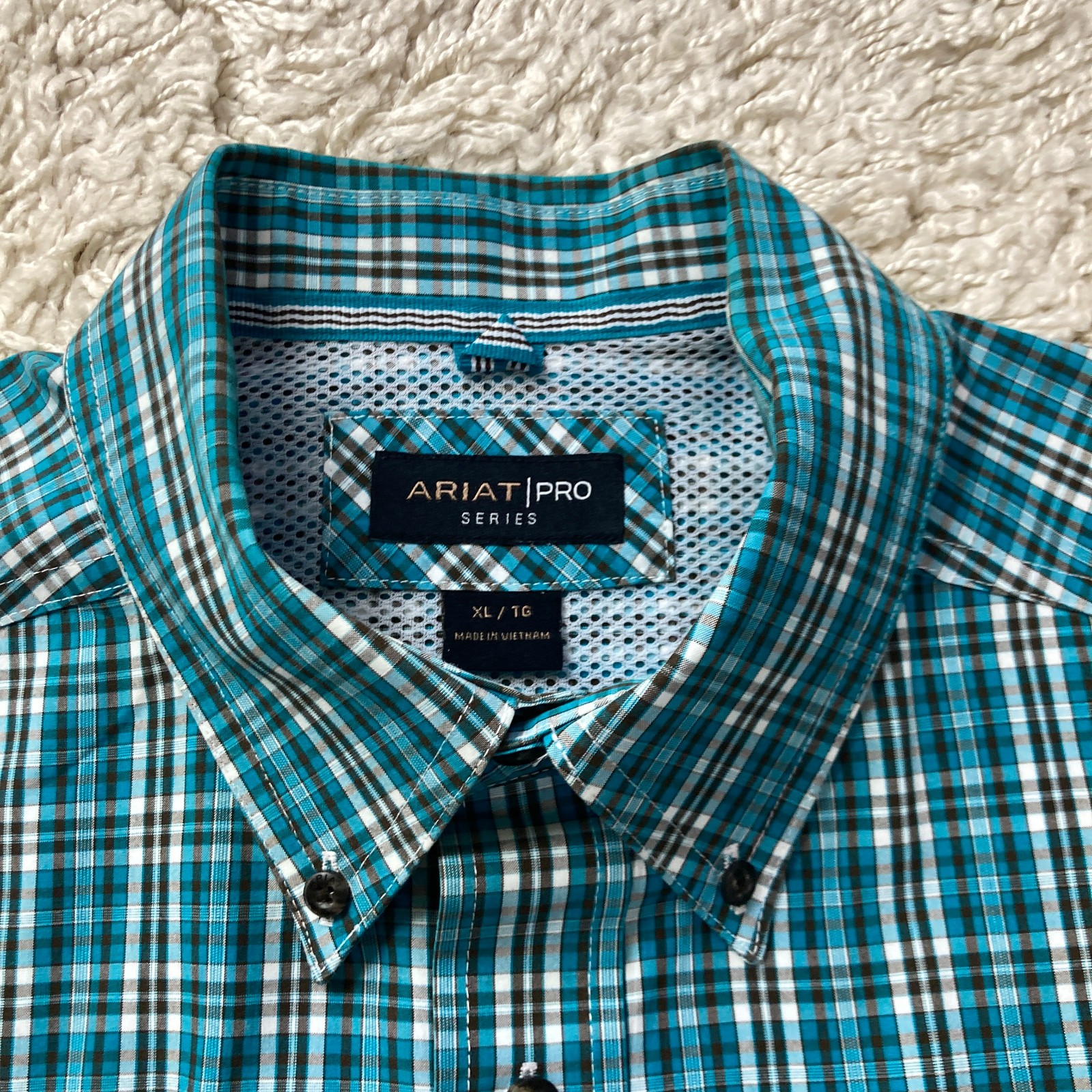 как выглядит Ariat Pro Series Shirt Mens XL Plaid Button Down Western Short Sleeve фото