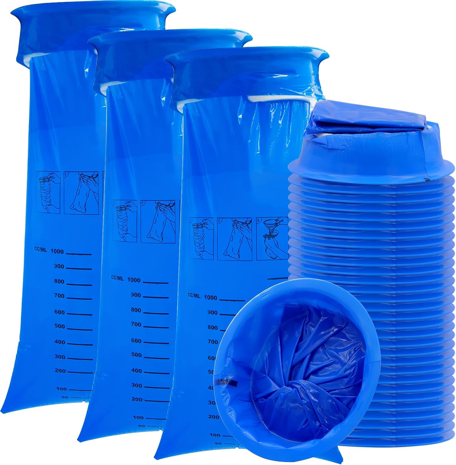 как выглядит 30 Pack Blue Emesis Vomit Bags for Morning Sickness, 1000 Ml Portable Nausea Bag фото