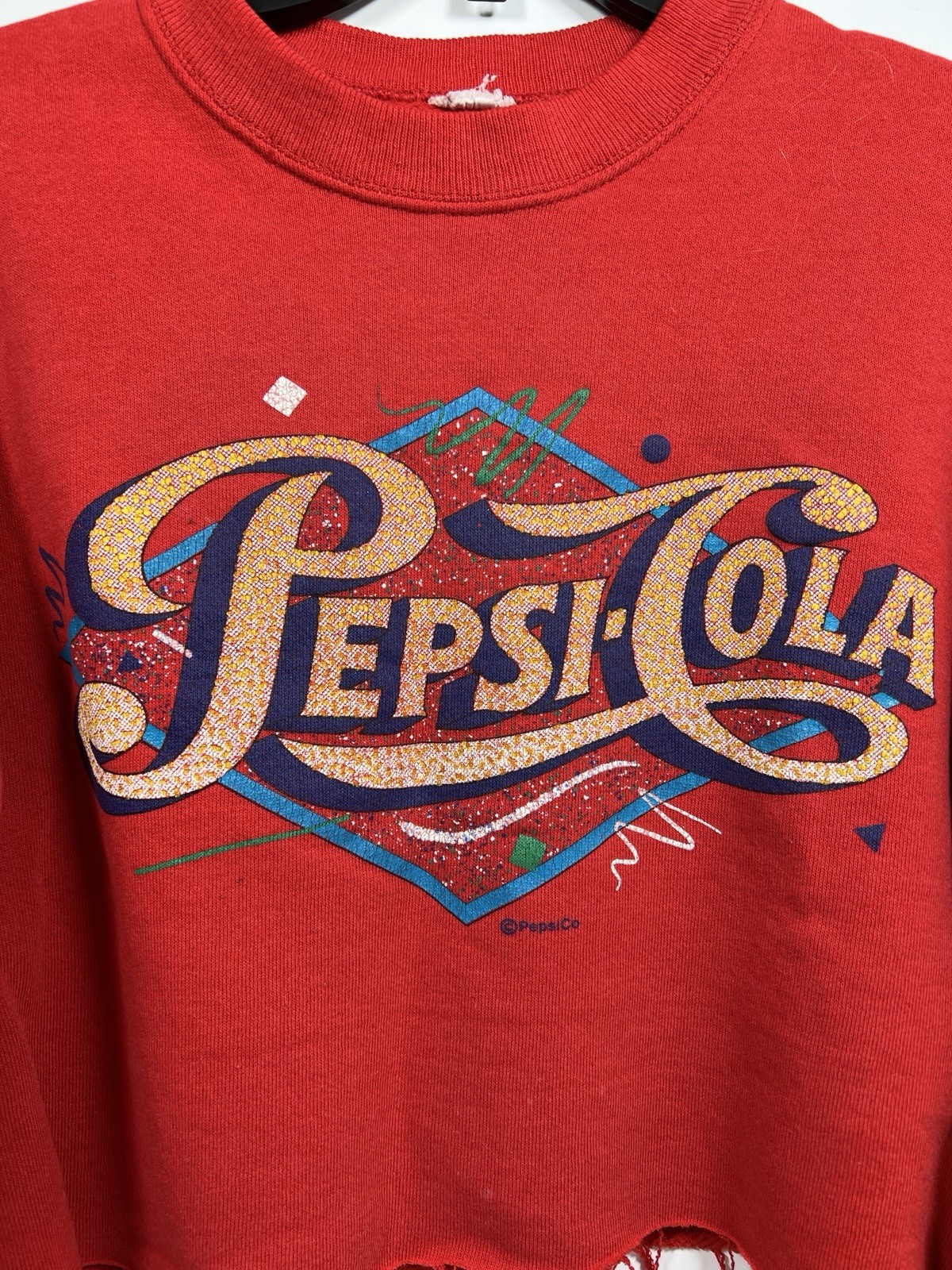 Vtg 1980s Pepsi Cola Apparel Red Logo Sweatshirt Cropped Sz S Cursive Retro