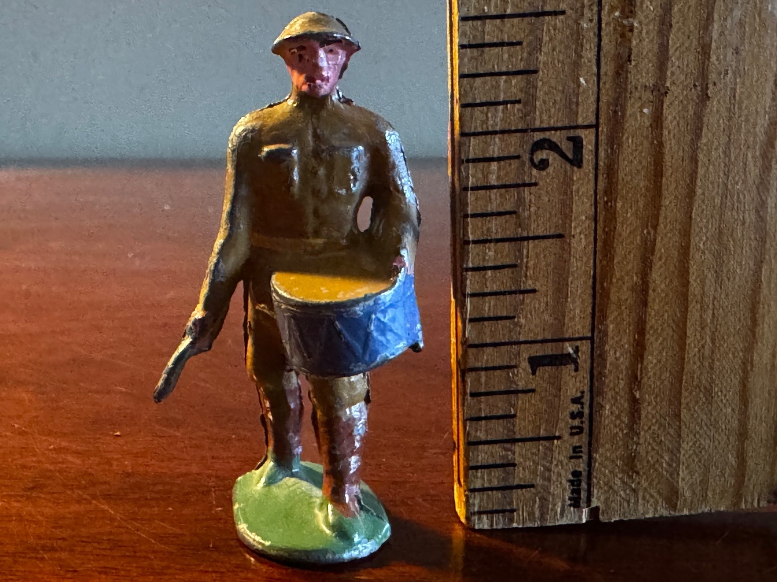 Vintage Early Barclay Drummer Khaki Blue Drum EB1 1920's Dimestore Solider VG