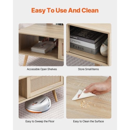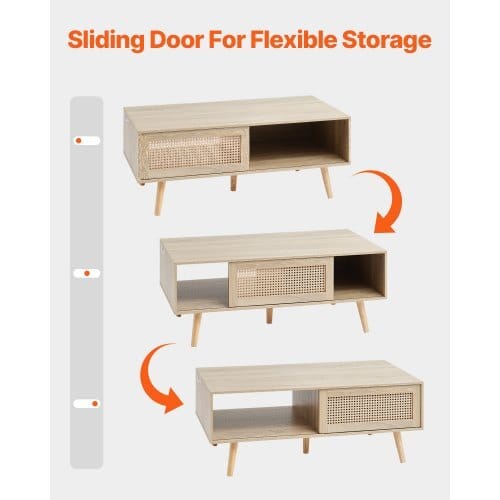 Rattan Coffee Table, Mid Century Modern Coffee Table, Rectangle Wood Coffee Tabl