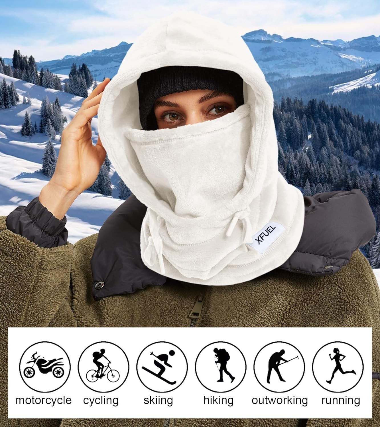 Balaclava Ski Mask for Women Men, Winter Thermal Hood Neck One Size, White
