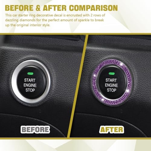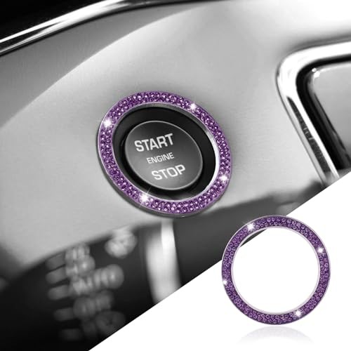 Bling Car Crystal Rhinestone Ring Emblem Sticker, Push to Start 1PCS Purple