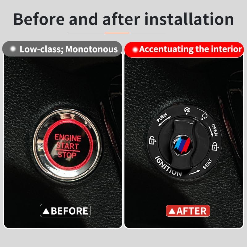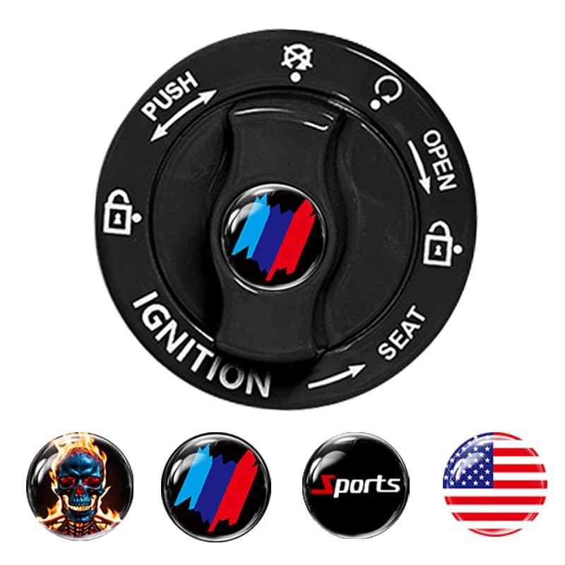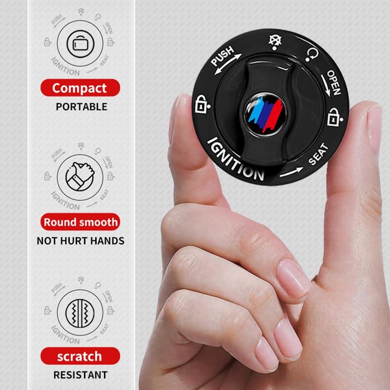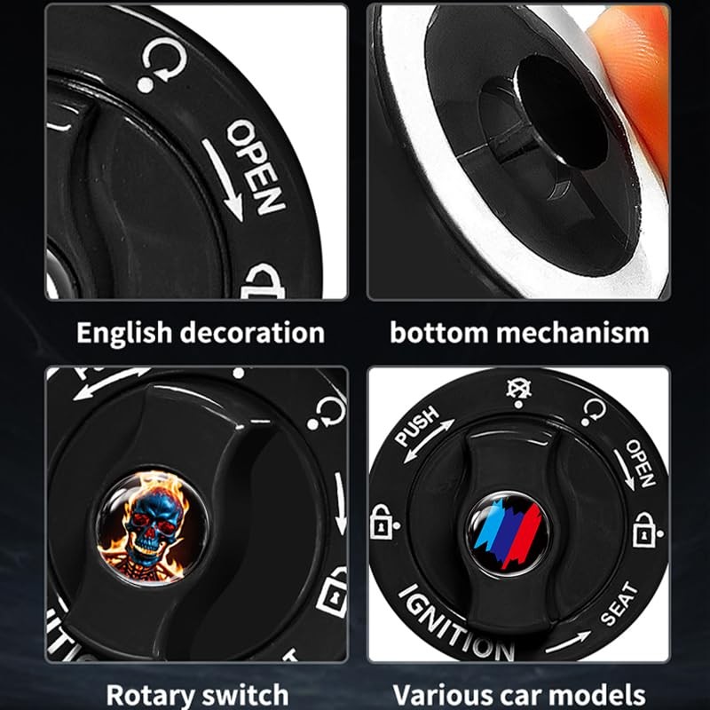 Metal Car Push Start Button Cover, Car Engine Start Stop Button Black 4 Logo