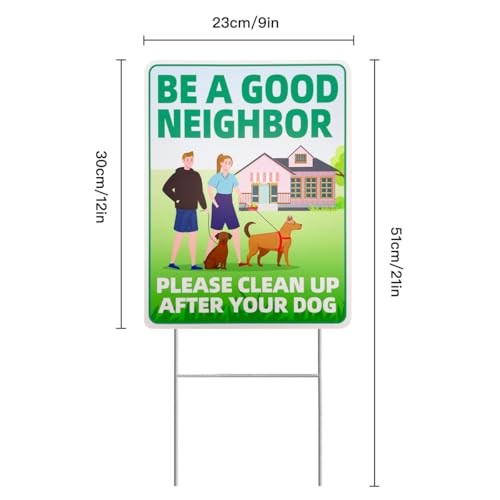 Clean Up After Your Dog Signs, 2 Pack 12x9 with Metal H-Stakes Be a Good