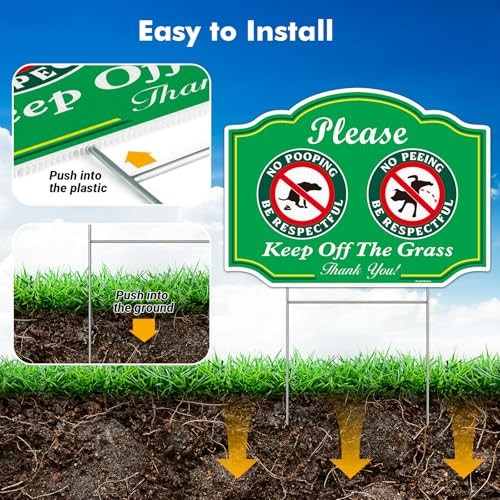 No Poop or Pee Dog Sign with Stakes, Keep Dogs off Lawn Sign, 2PC-12.6x9.5