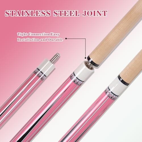 48/58 Inch Maple Cue Stick, Short Pool Cue Stick for Beginners, Pink 18 oz