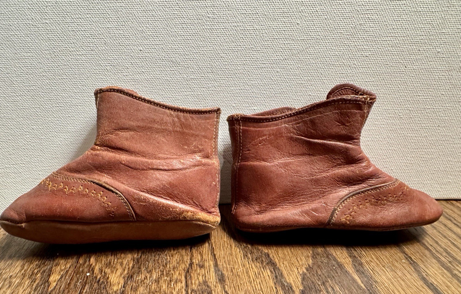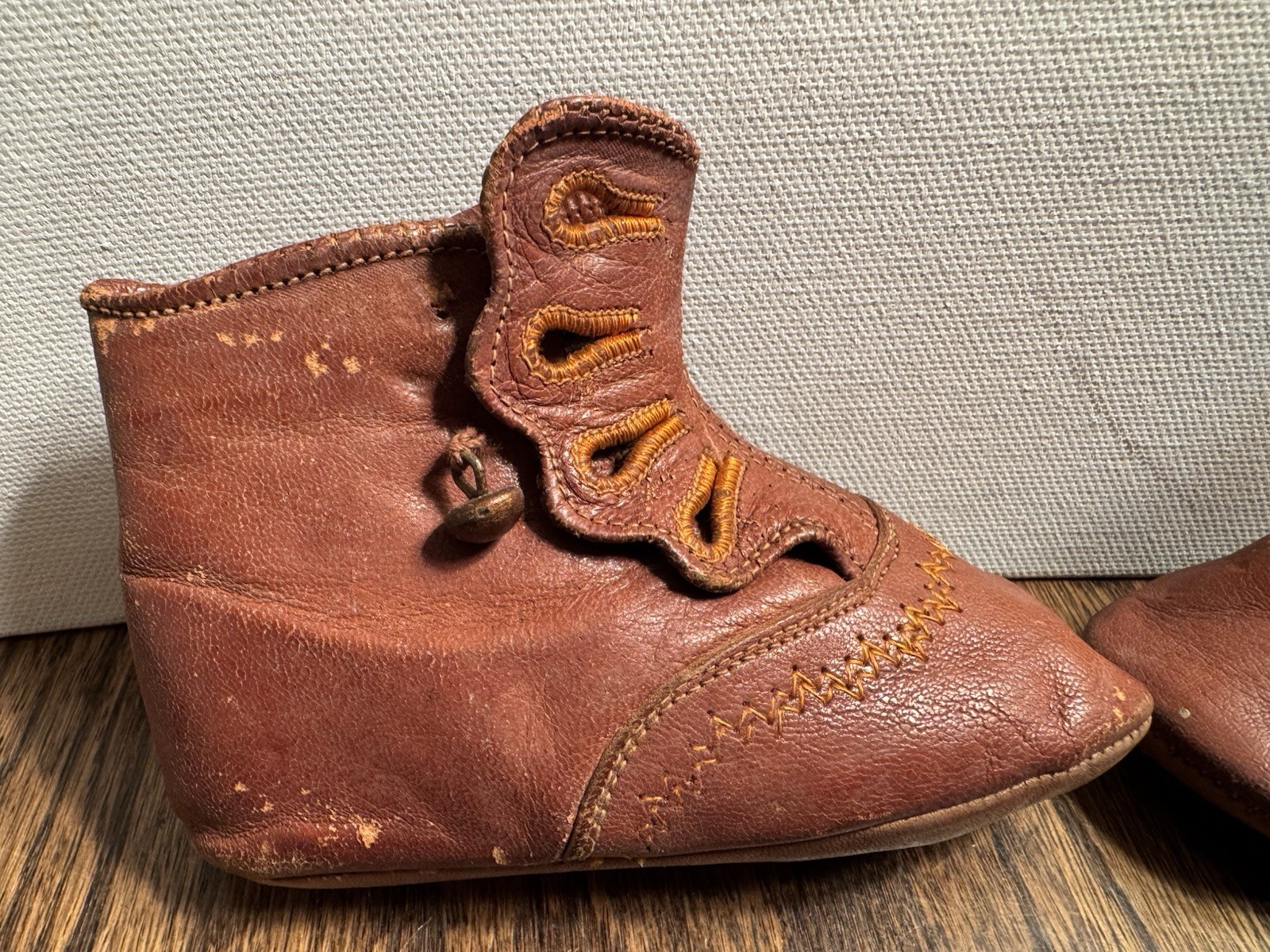 как выглядит Antique Victorian Baby Childs Doll Chocolate Leather Button Up Booties Shoes фото