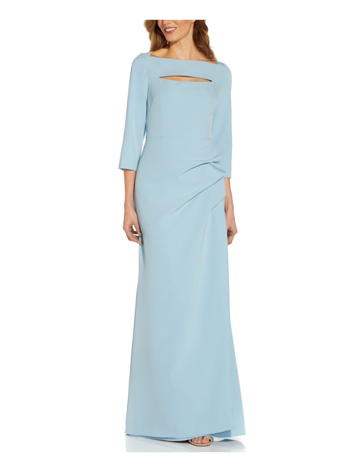 ADRIANNA PAPELL Womens 3/4 Sleeve Boat Neck Full-Length Formal Gown Dress