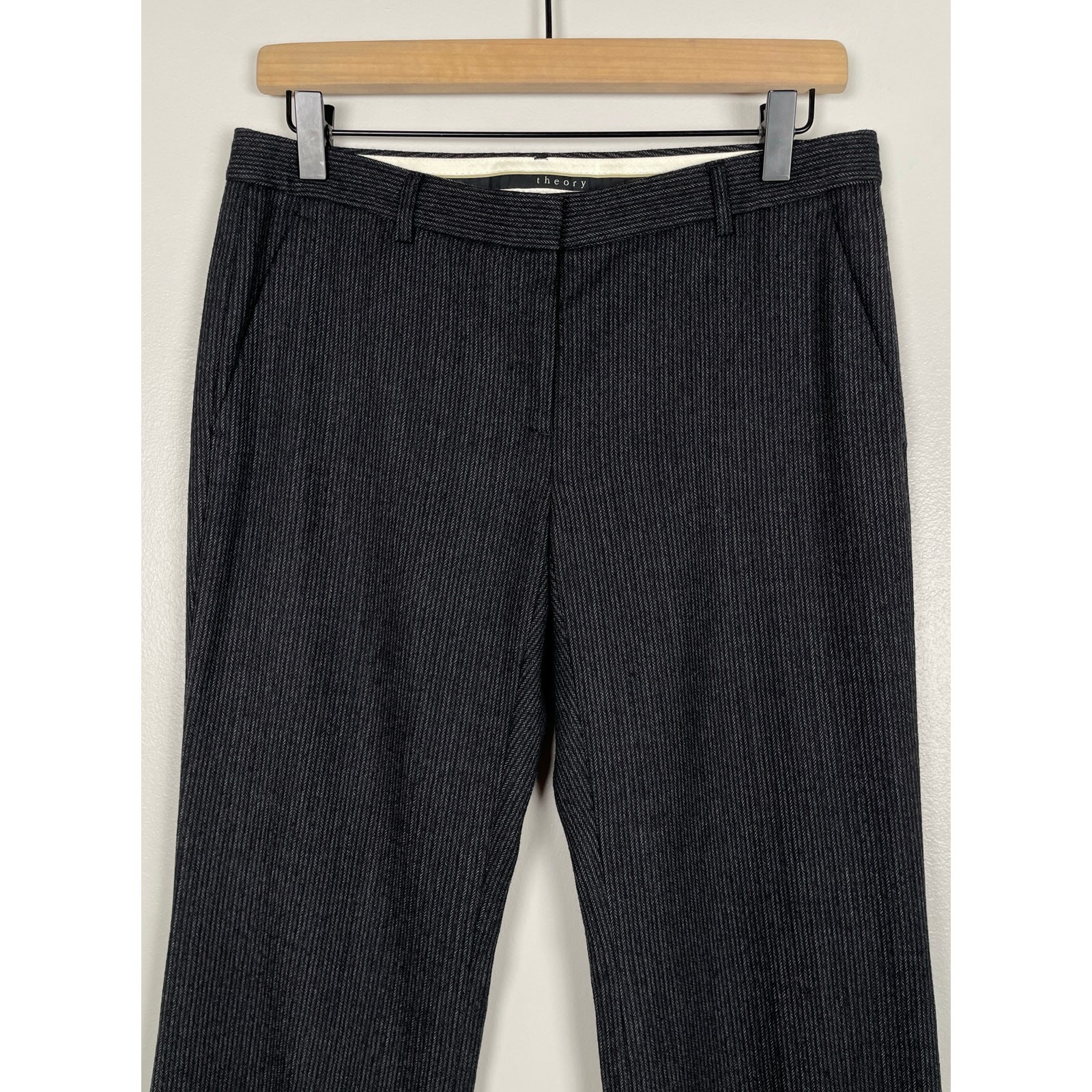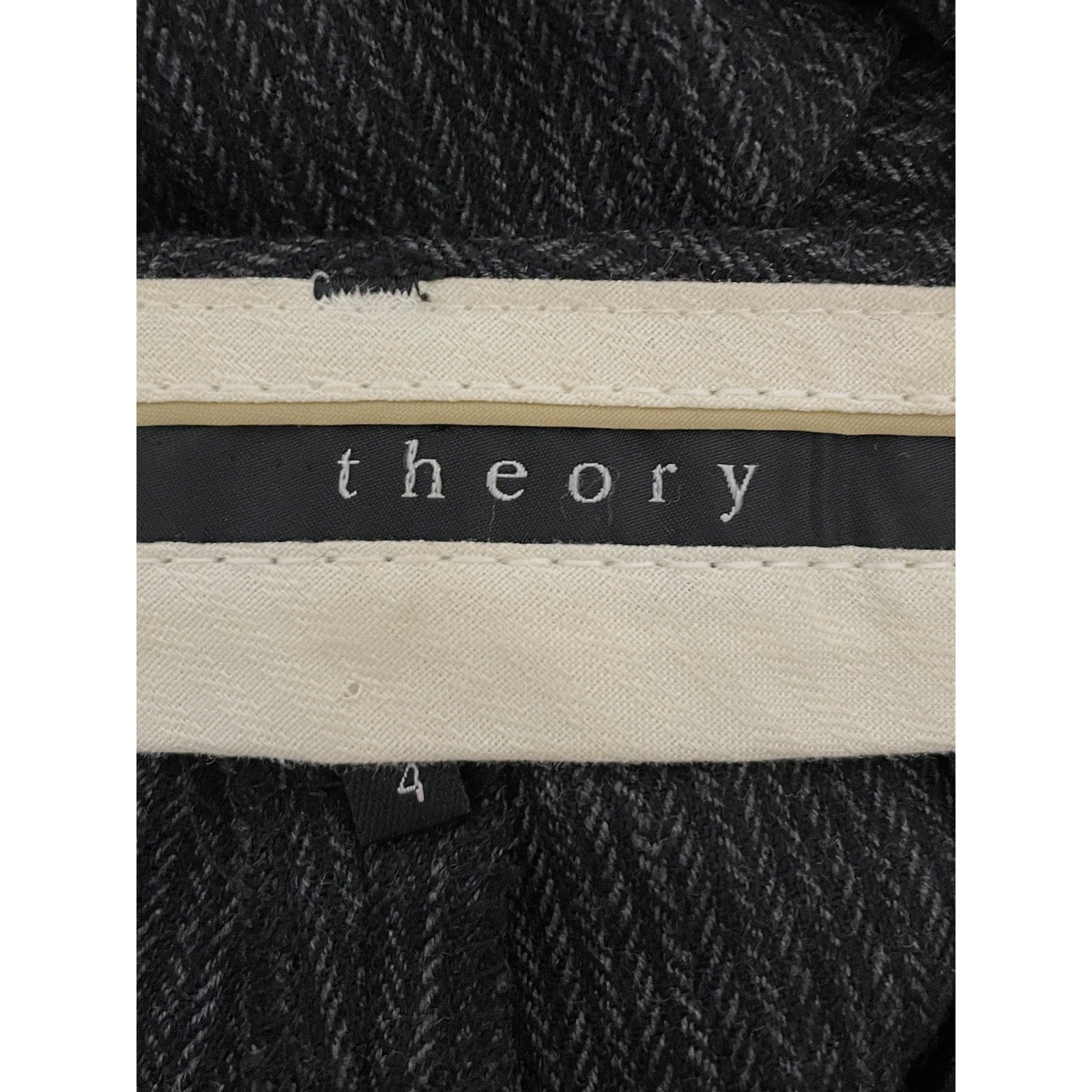 Theory Wide Leg Wool Trouser Pants Gray Herringbone Size 4 Professional Career