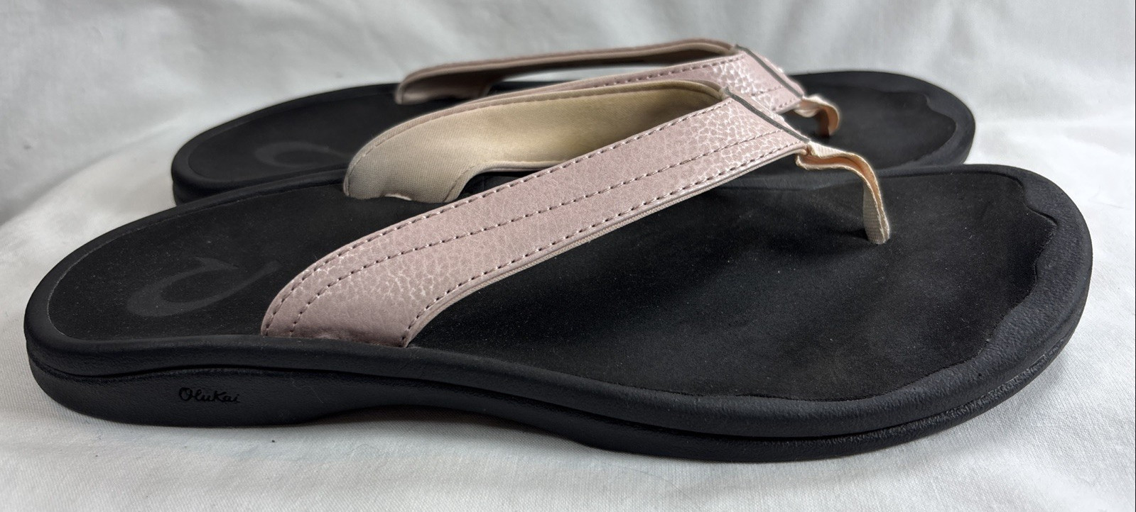 как выглядит OluKai Ohana Slip On Flip Flops Beach Sandals Petal Pink Black Womens Size 11 фото