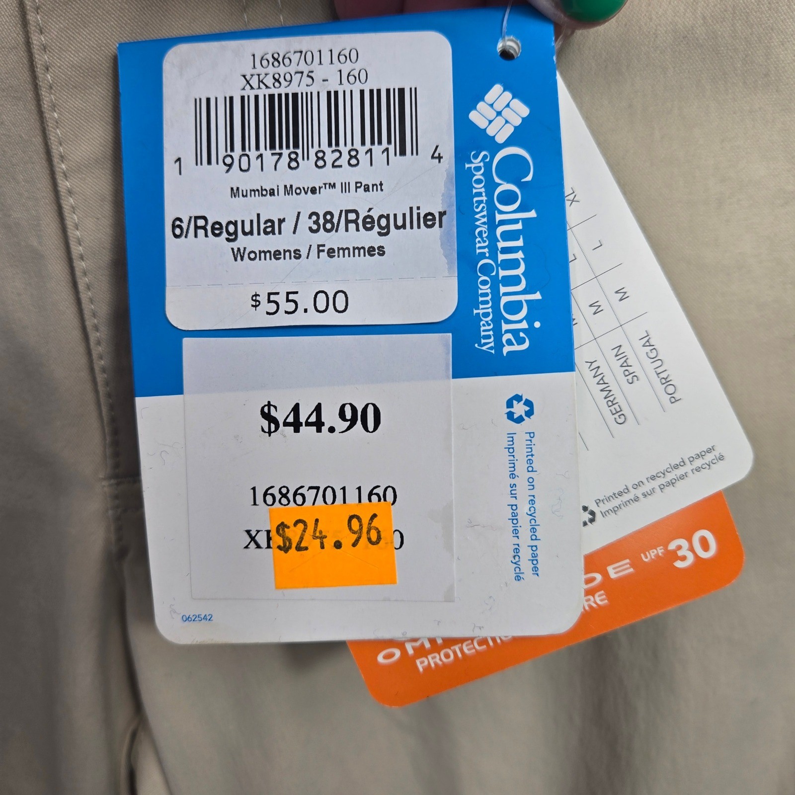 Columbia Womens Mumbai Mover III Pant Khaki Omni Shield Size 6 Regular NWT