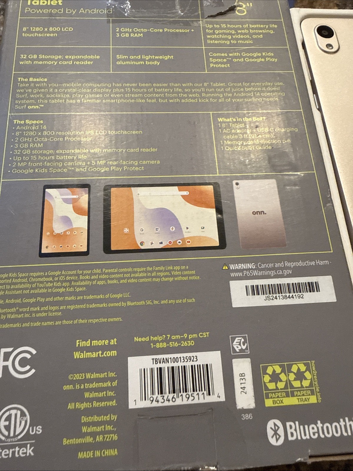 ONN SURF TABLET 32GB 8 ANDROID 14 Gray Color TBVAN100135923