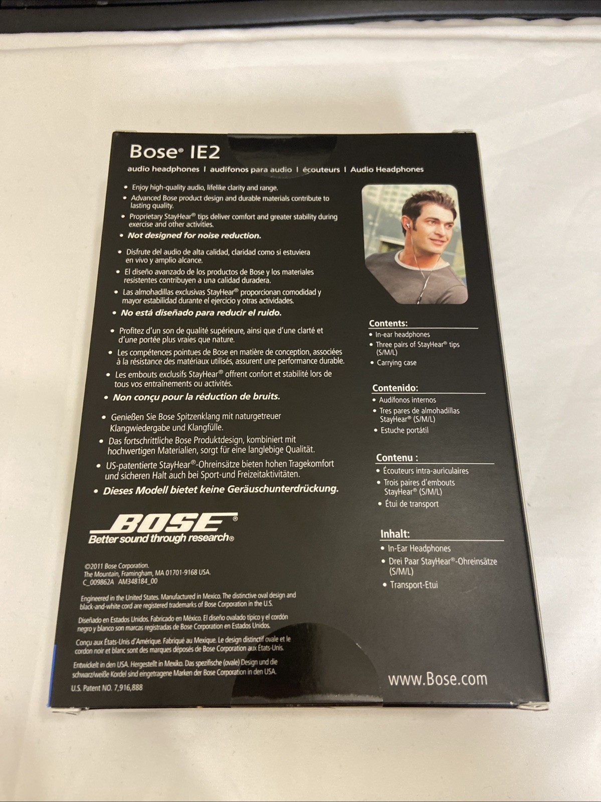 как выглядит Bose IE2 Wired In-Ear StayHear Headphones Carrying Case Black/White New SEALED фото