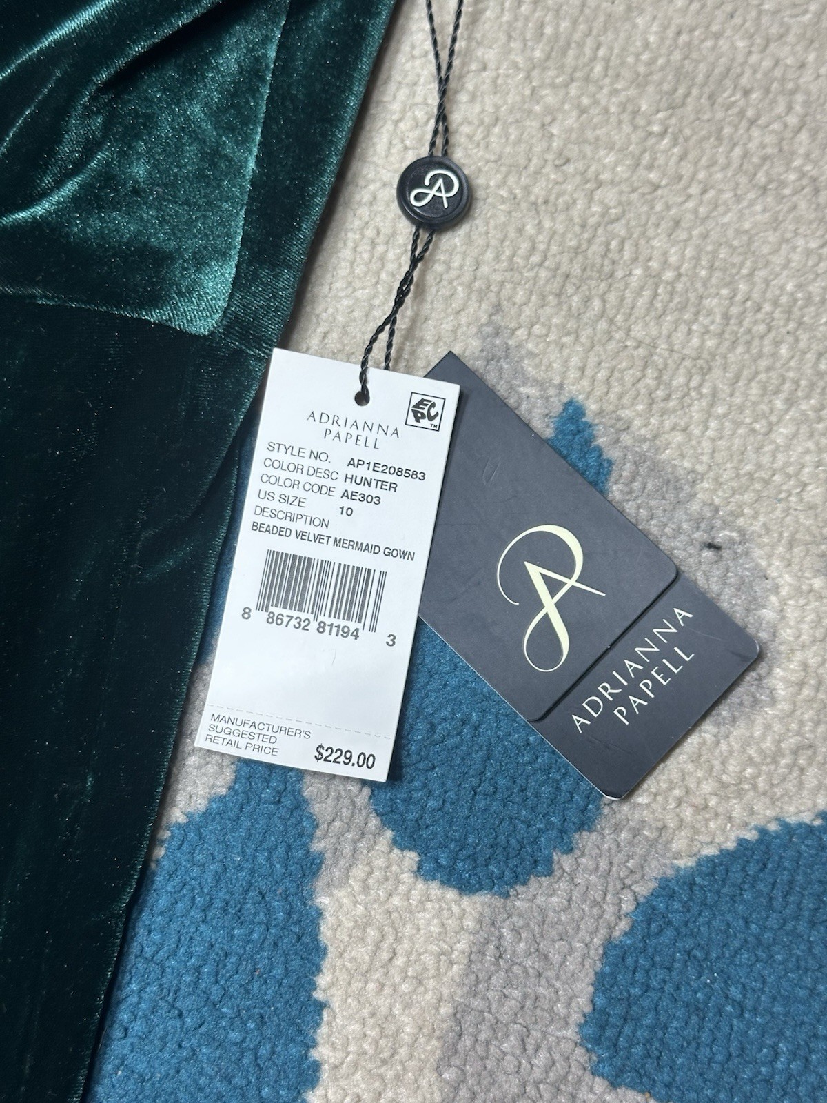 Adrianna Papell Hunter Green Beaded Velvet Mermaid Gown NWT Sz 10 229