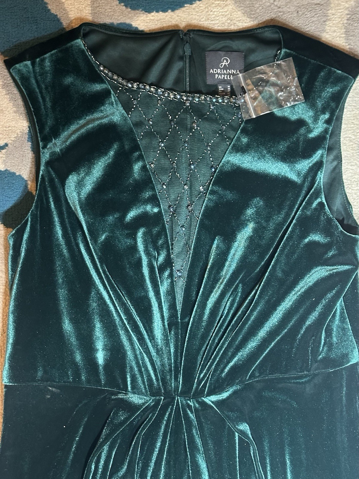 как выглядит Adrianna Papell Hunter Green Beaded Velvet Mermaid Gown NWT Sz 10 229 фото