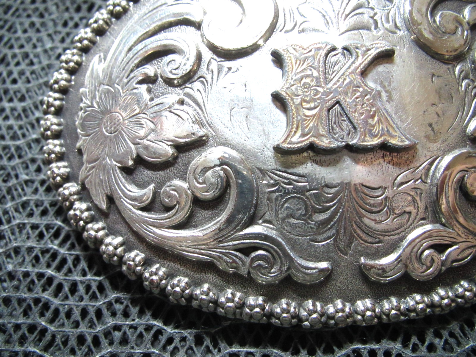 WESTERN K INITIAL FLORAL COWBOY COWGIRL BELT BUCKLE VINTAGE RARE NOCONA