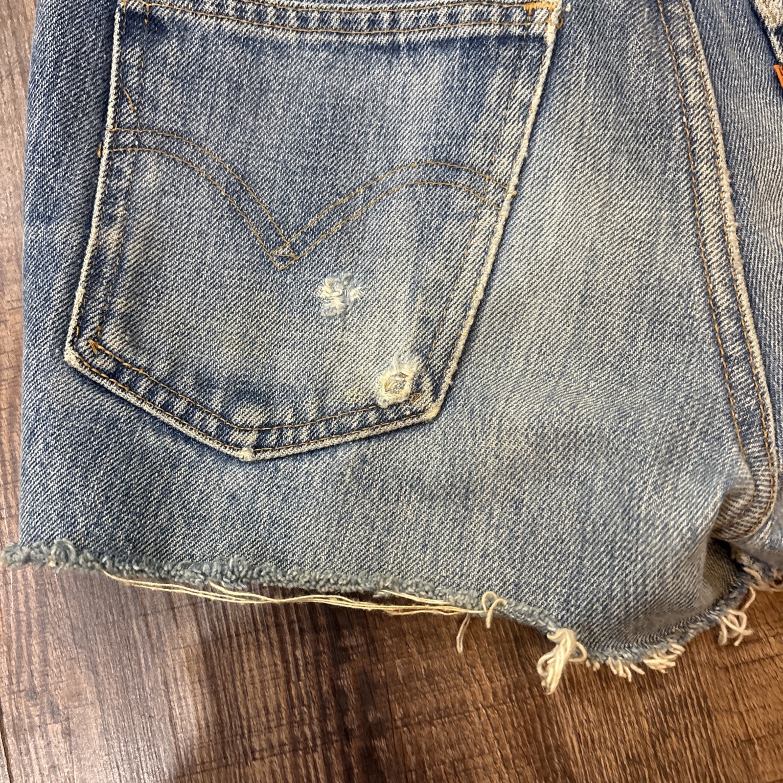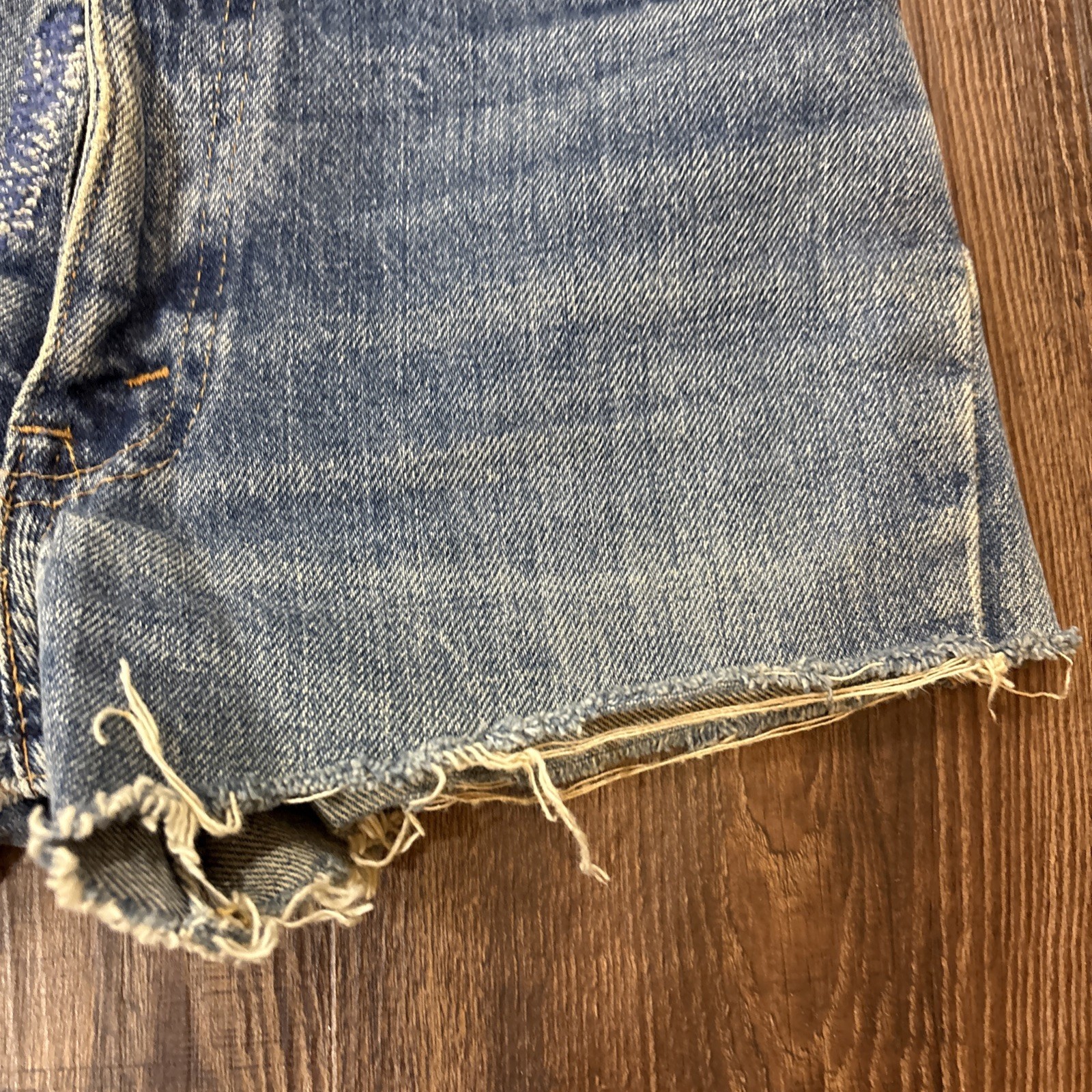 как выглядит Vintage Levis Short Shorts Youth 24x2.5 Blue Denim Orange Tab Cut Off 70s фото