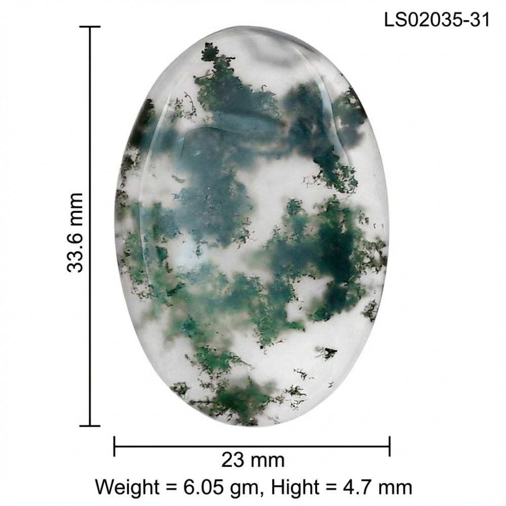 Natural Green Moss Agate 33.6x23x4.7 mm Oval Shape Polished Gemstone LS02035-31