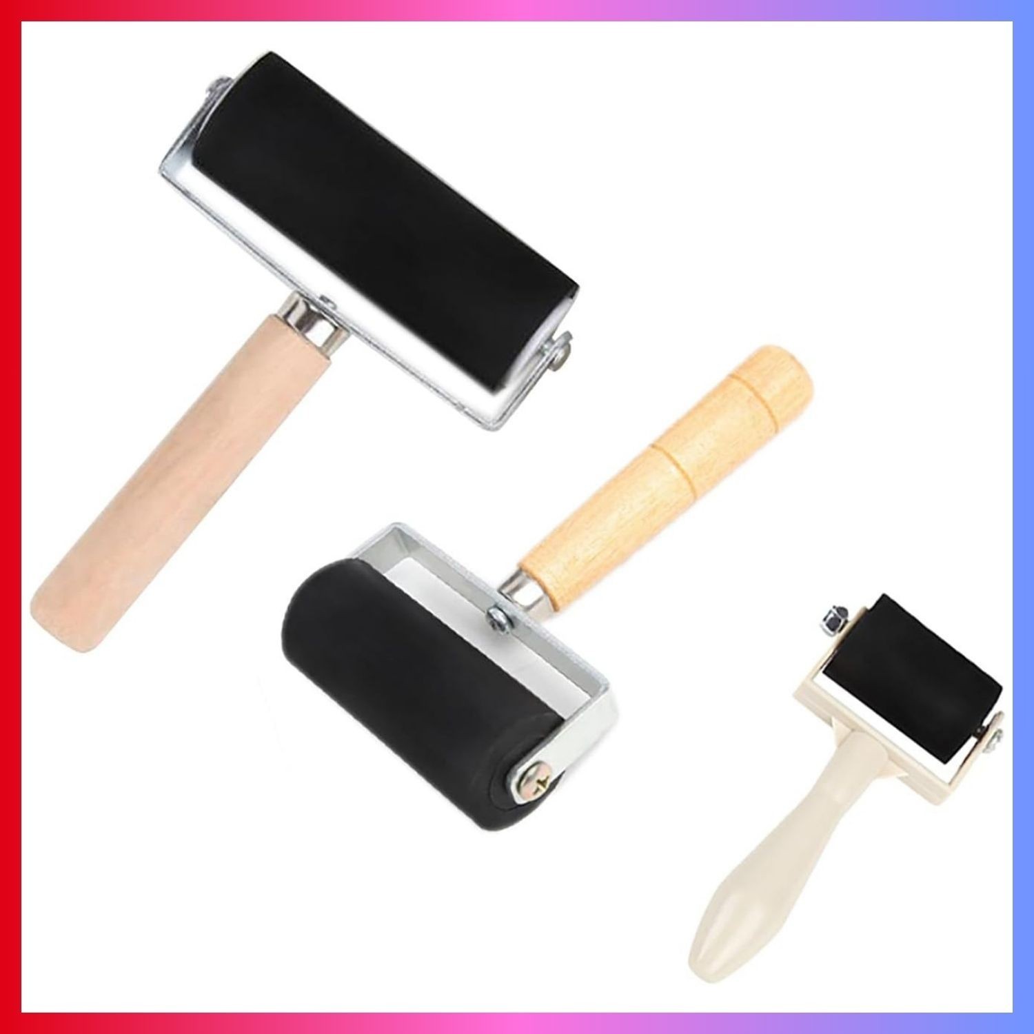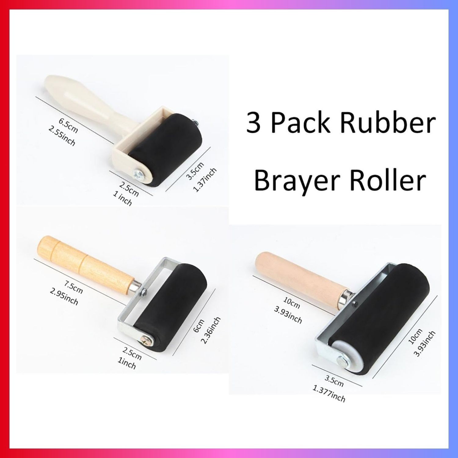 3pk Rubber Roller Brayer Rollers 1.4/2.4/4 Inch Art Craft Roller for Printmaking
