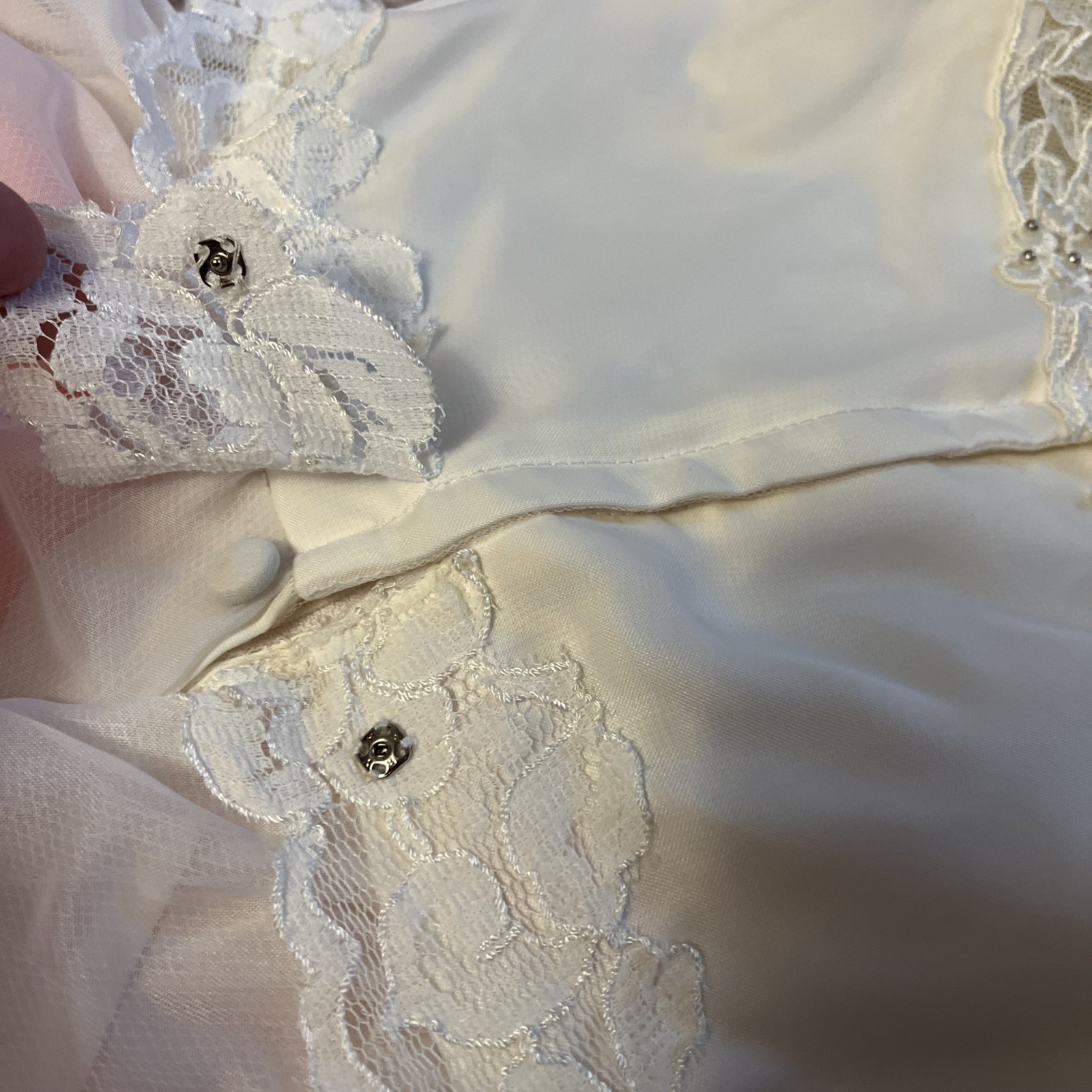 Vintage 1950s Wedding Dress Lace train beaded puff long sleeve layered sheer