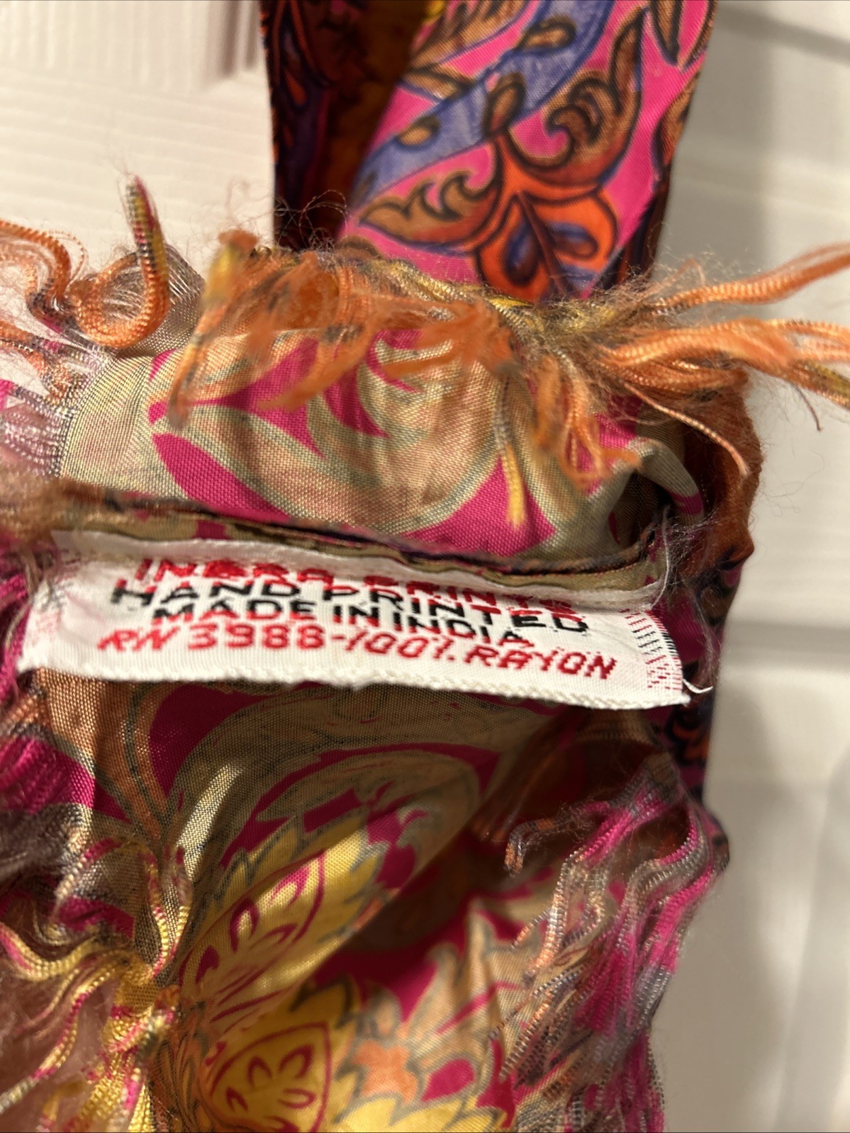 Indra Prints Vintage Rayon Scarf India Purple Orange Floral