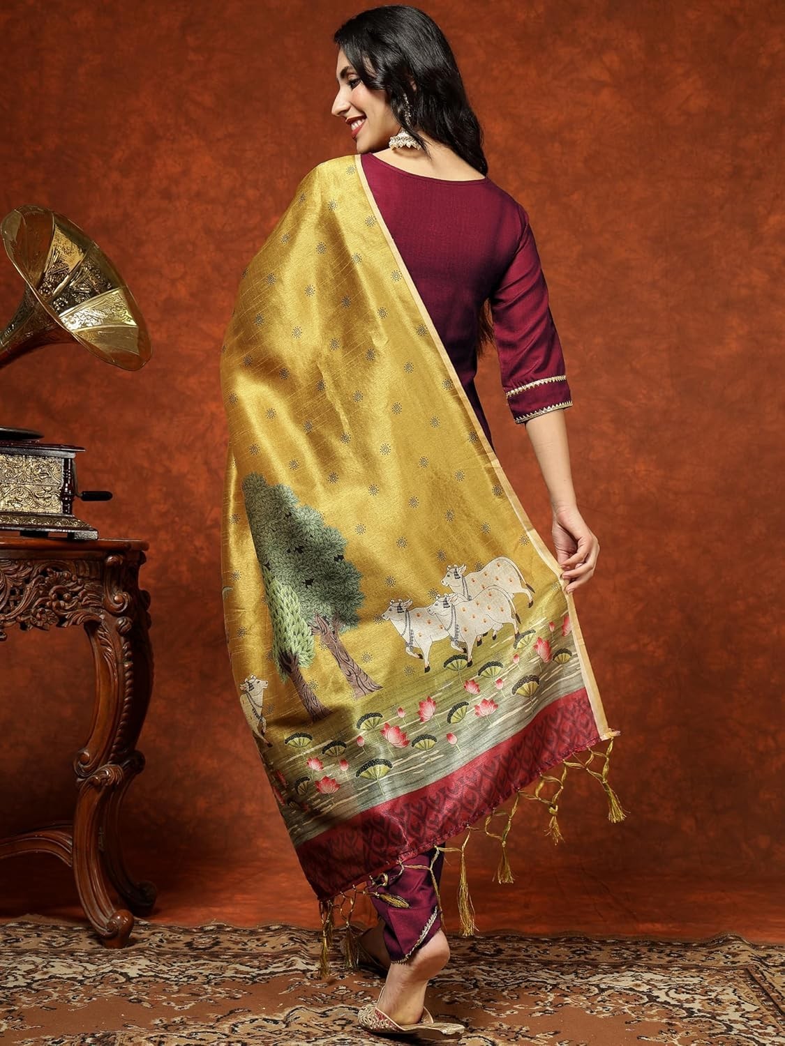 Women's Cotton Blend Kurta Pant Dupatta Set