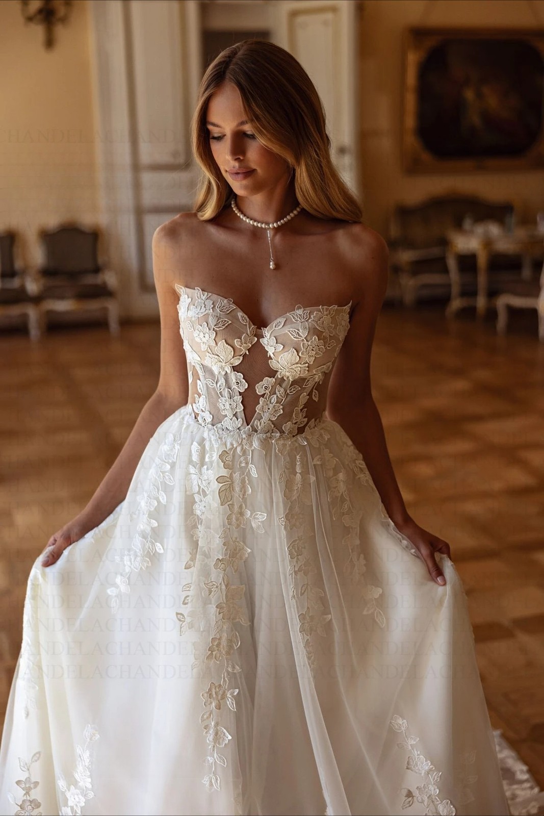 Classic Sweetheart Wedding Dress A Line Sleeveless Lace Appliques Zipper Bridal