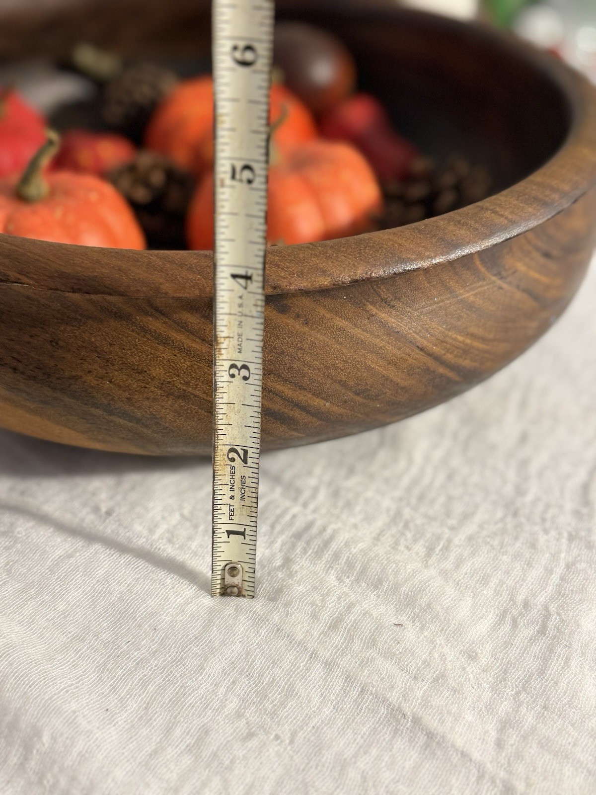 Large Hand Turned Wooden Bowl Solid Wood Rustic Farmhouse Decor 12