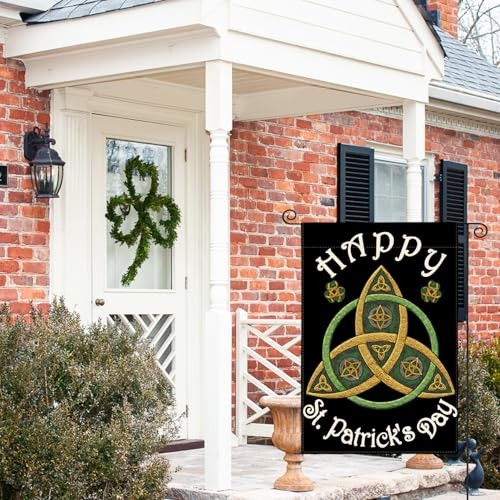 Happy St Patricks Day Garden Flag 12x18 Inch Double Garden Size-12 x 18 Black