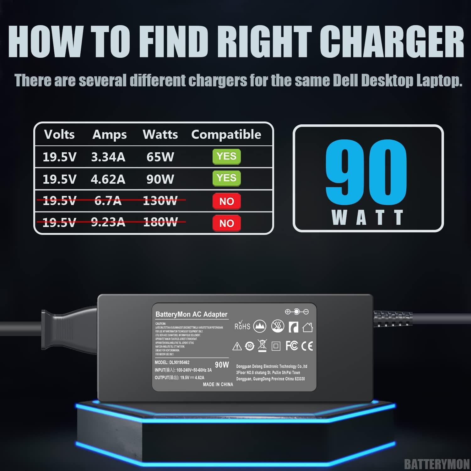90W Dell OptiPlex Power Adapter Charger for Micro Desktop PCs AC Cord OEM Fit
