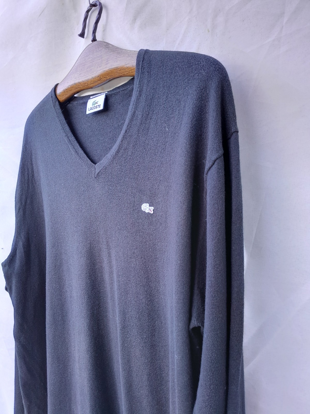 как выглядит Lacoste Sweater Mens XL Black Cotton Cashmere Embroidered Logo Made in Spain фото