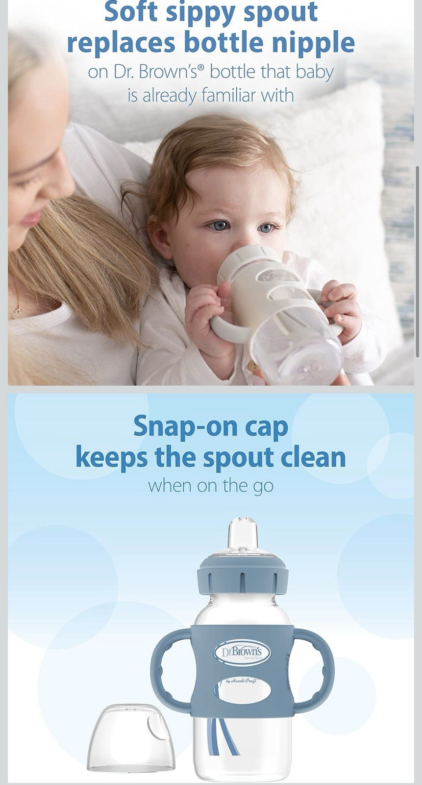 как выглядит Dr. Browns Milestones Wide Neck Sippy Spout Bottles 9oz 2 Pack Flexible Handles фото