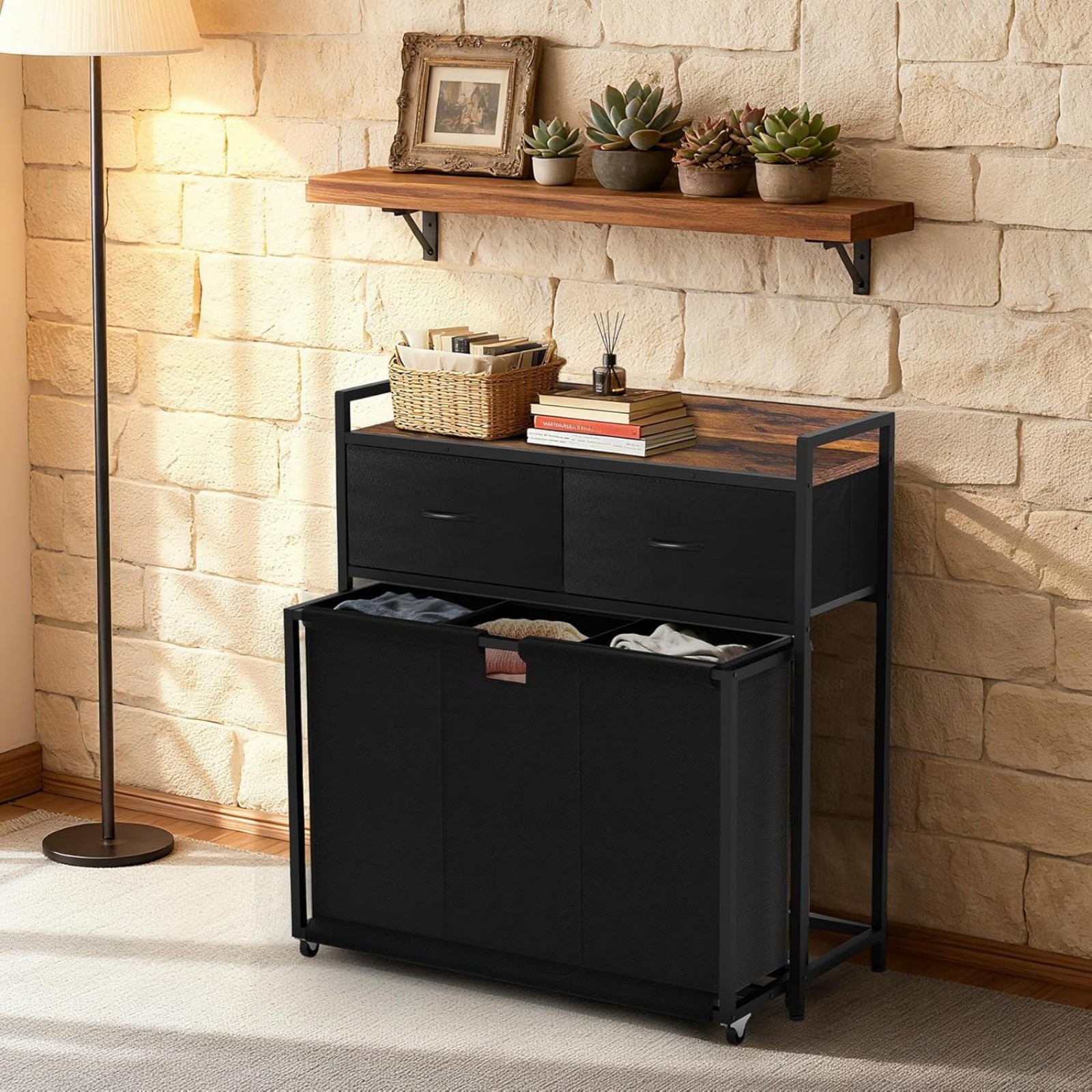 Laundry Sorter Laundry Hamper Basket with 3 Section for Laundry Room Black