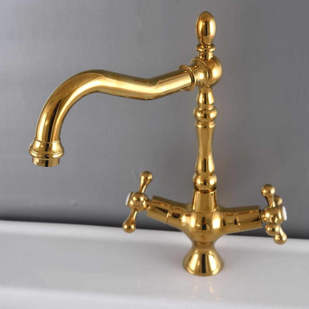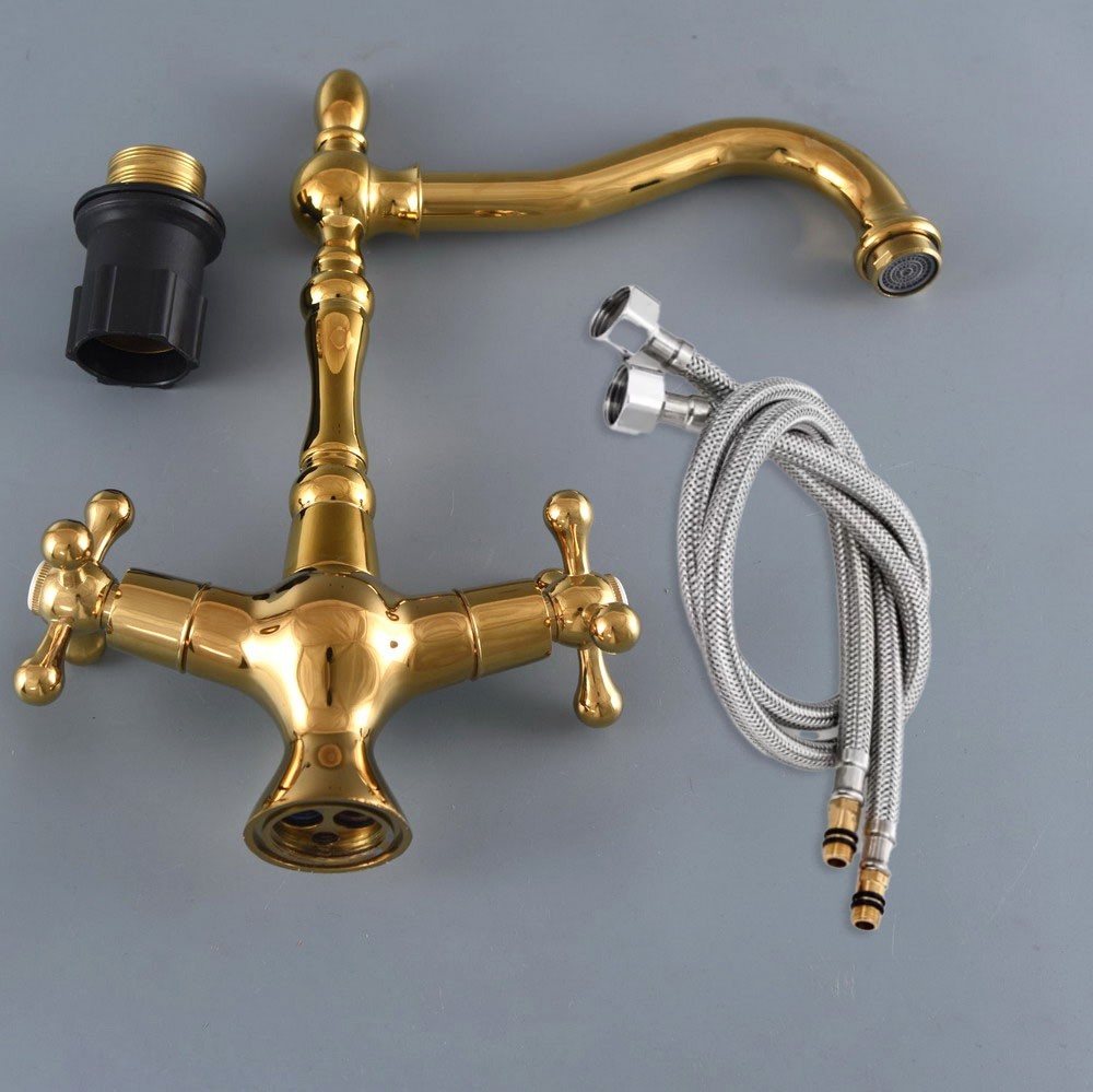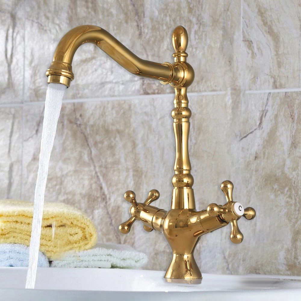 Gold Color Brass Bathroom Kitchen Sink Swivel Spout Faucet Mixer Tap fgf066