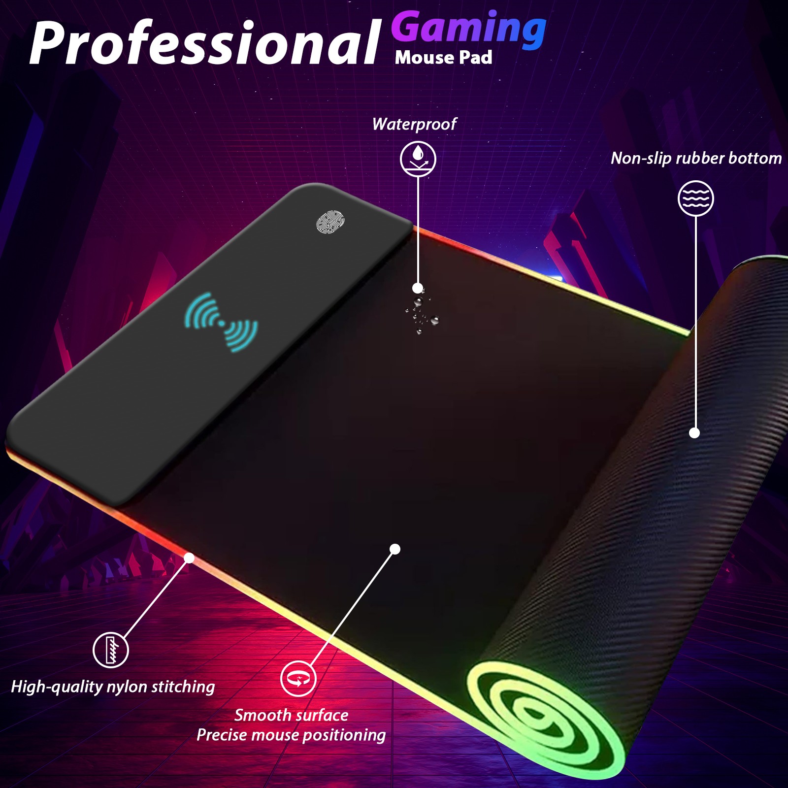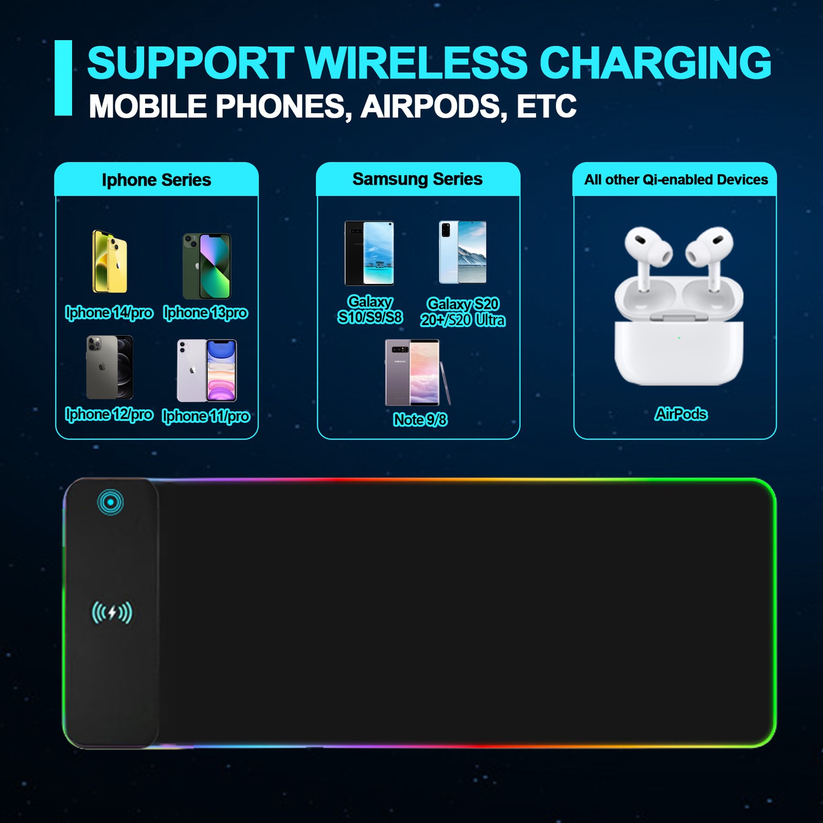 RGB Wireless Charging Gaming Mouse Pad 15W Fast Charge Extra Large 800x300mm
