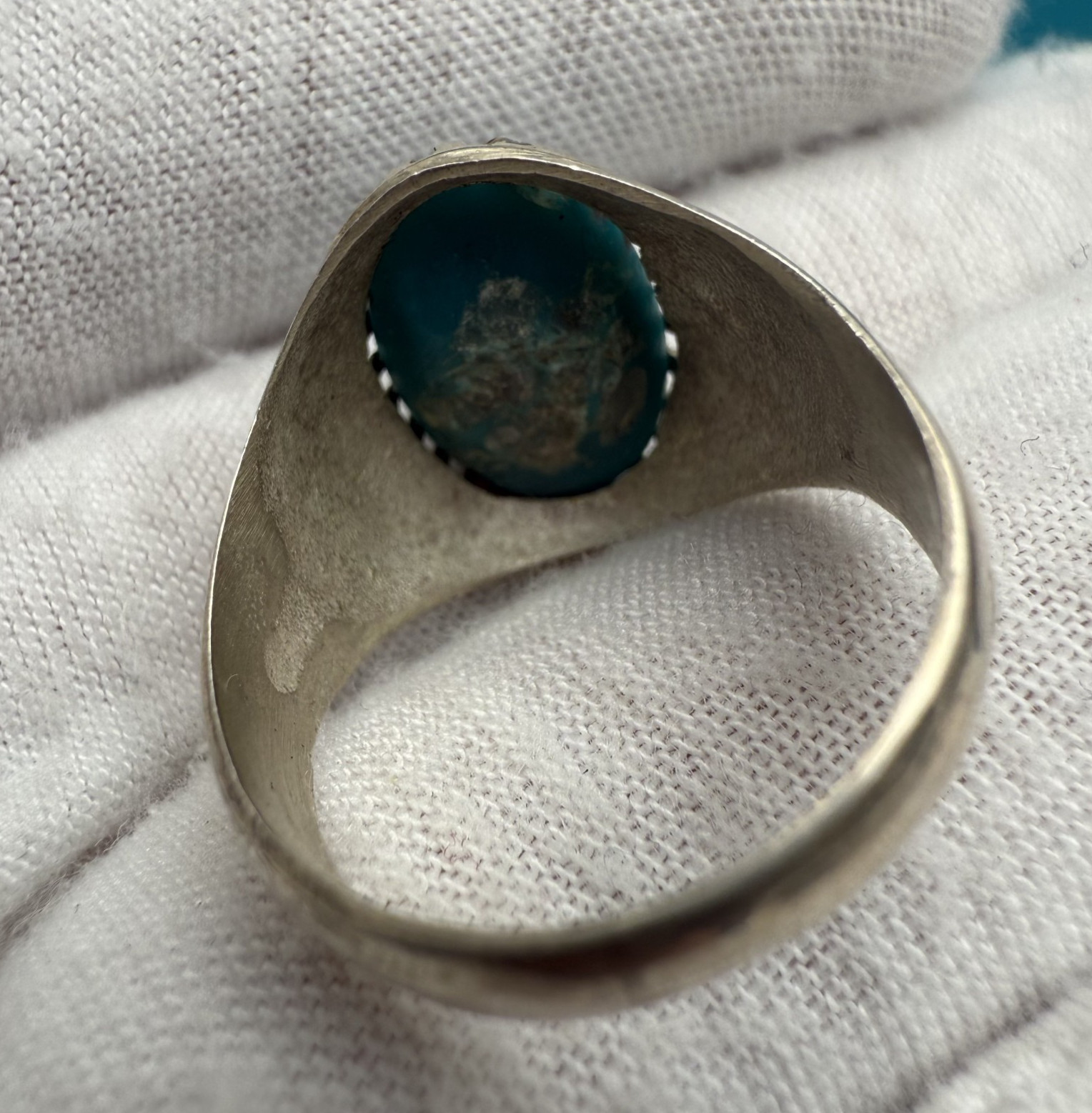 Sterling Silver Ring with Natural Turquoise Feroza Gemstone