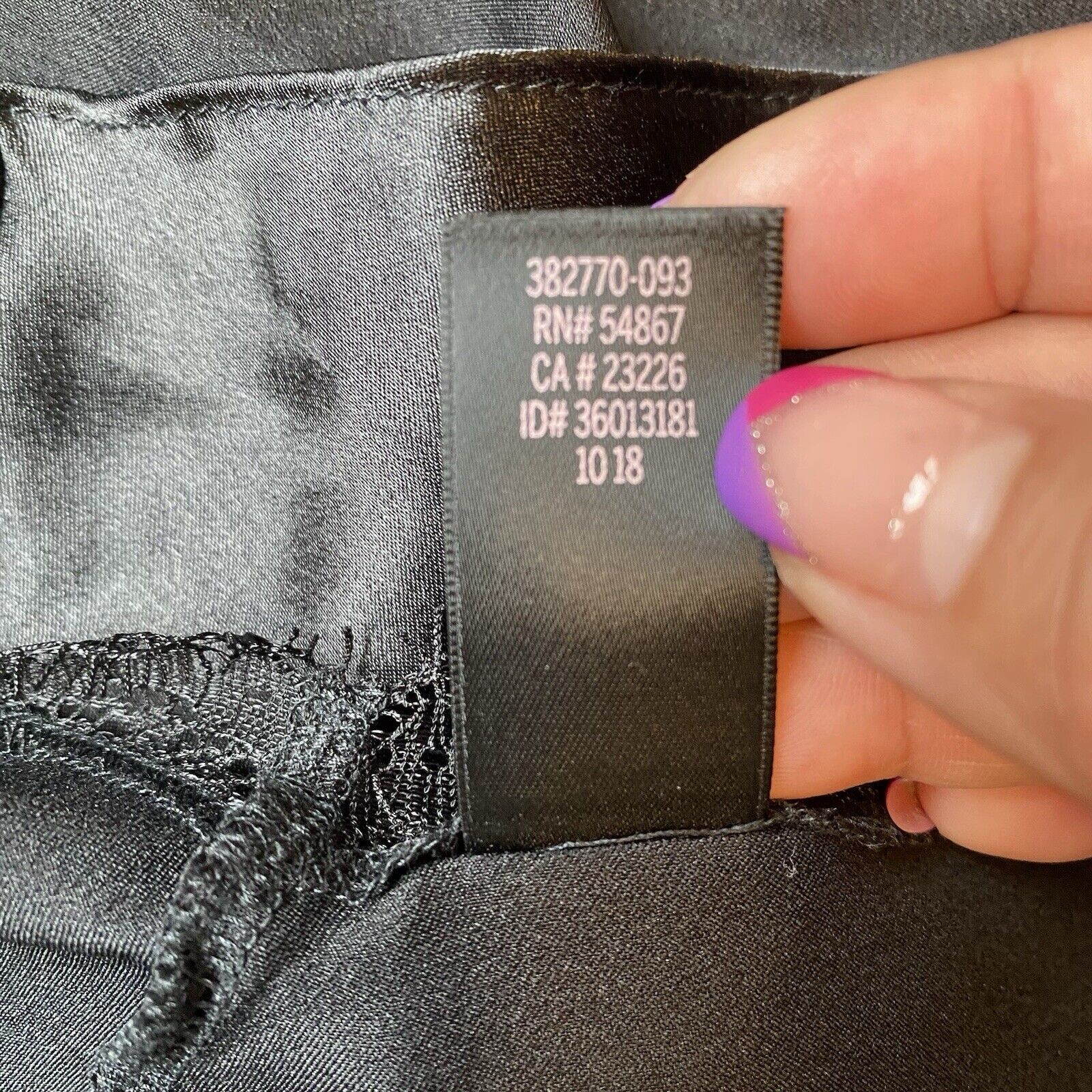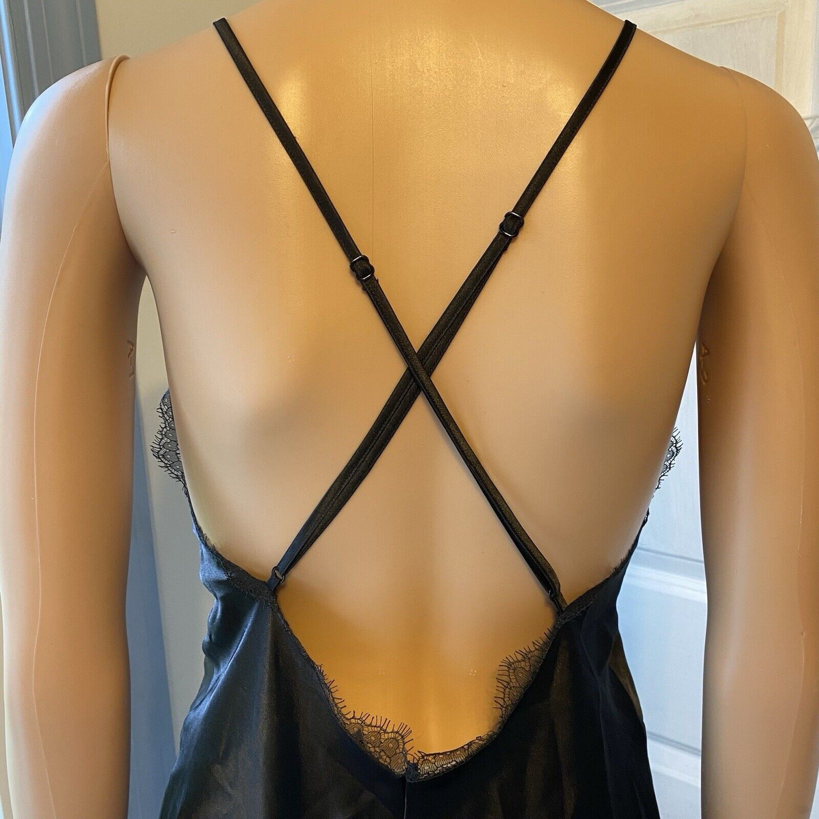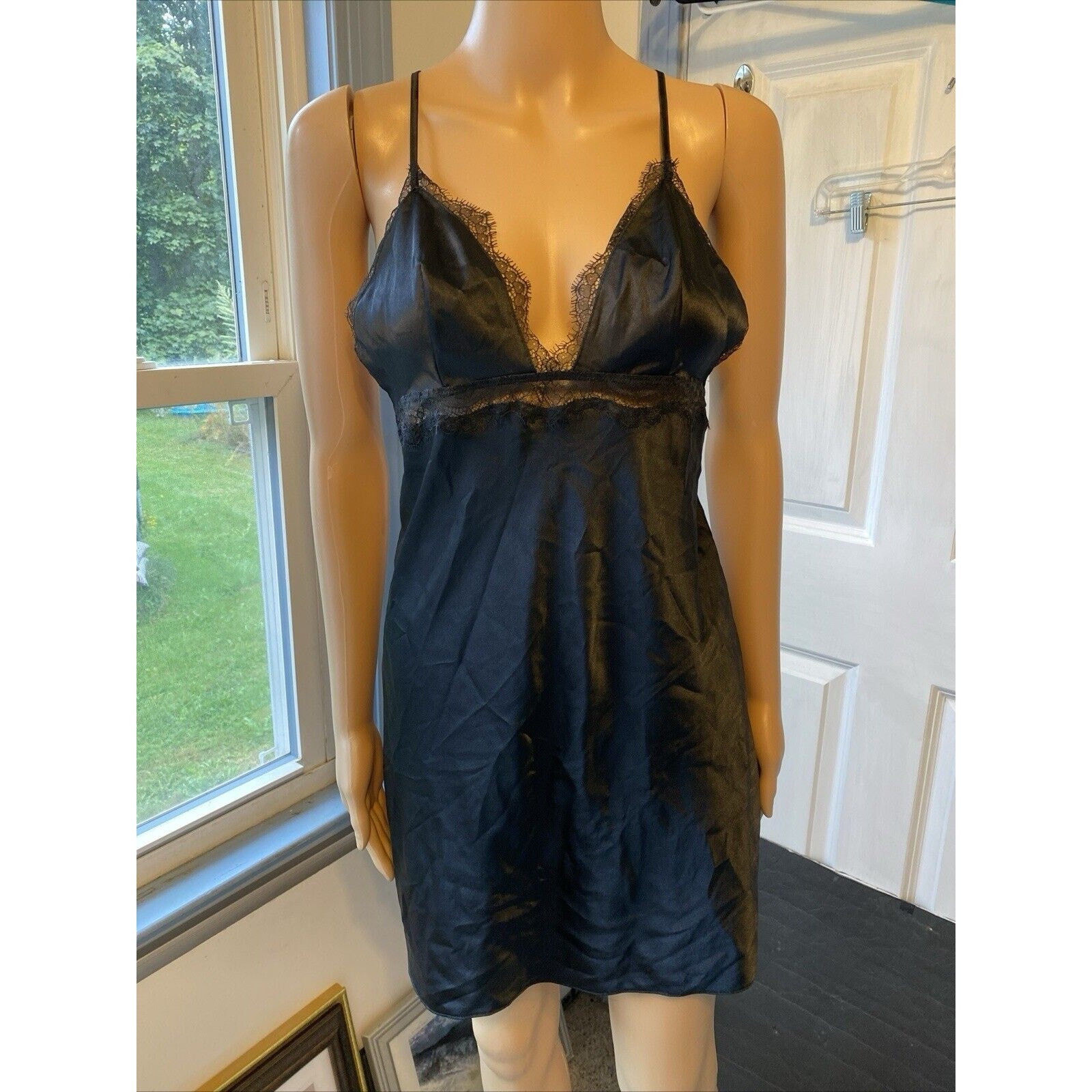 Victorias Secret Black Satin Plunge Lace Babydoll SlipDress Lingerie M DarkFairy