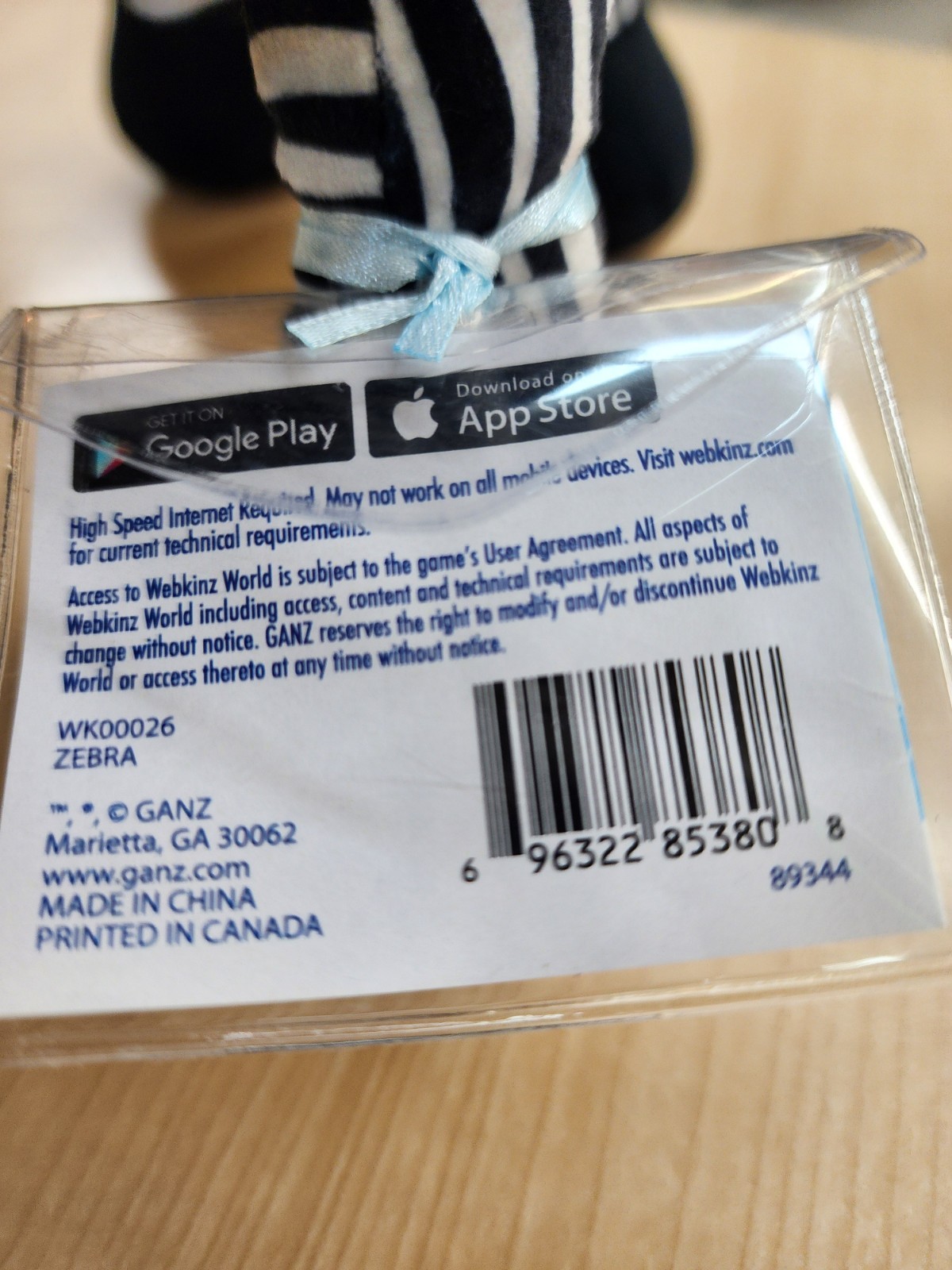 BRAND NEW WEBKINZ 2025 ZEBRA WITH UNUSED CODES