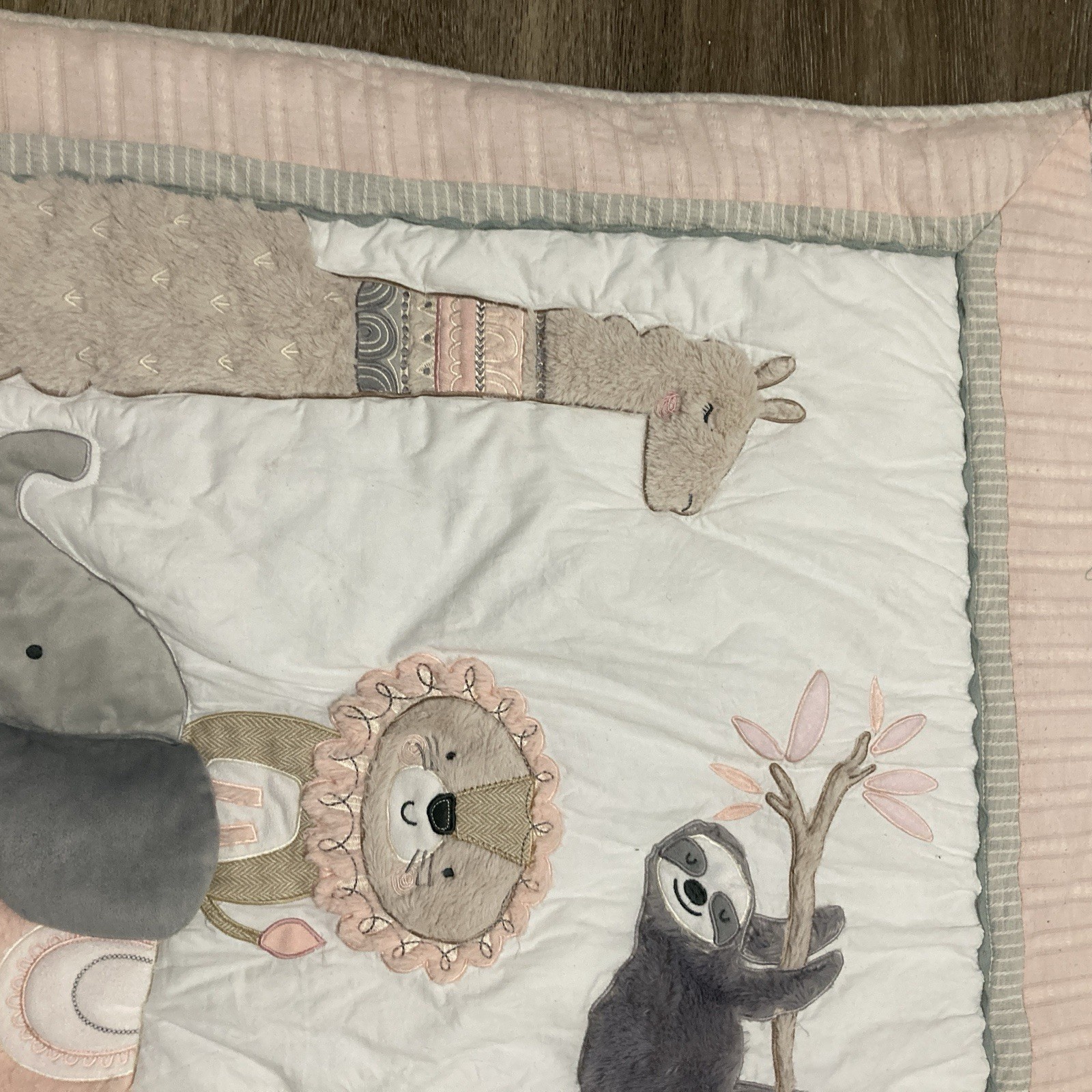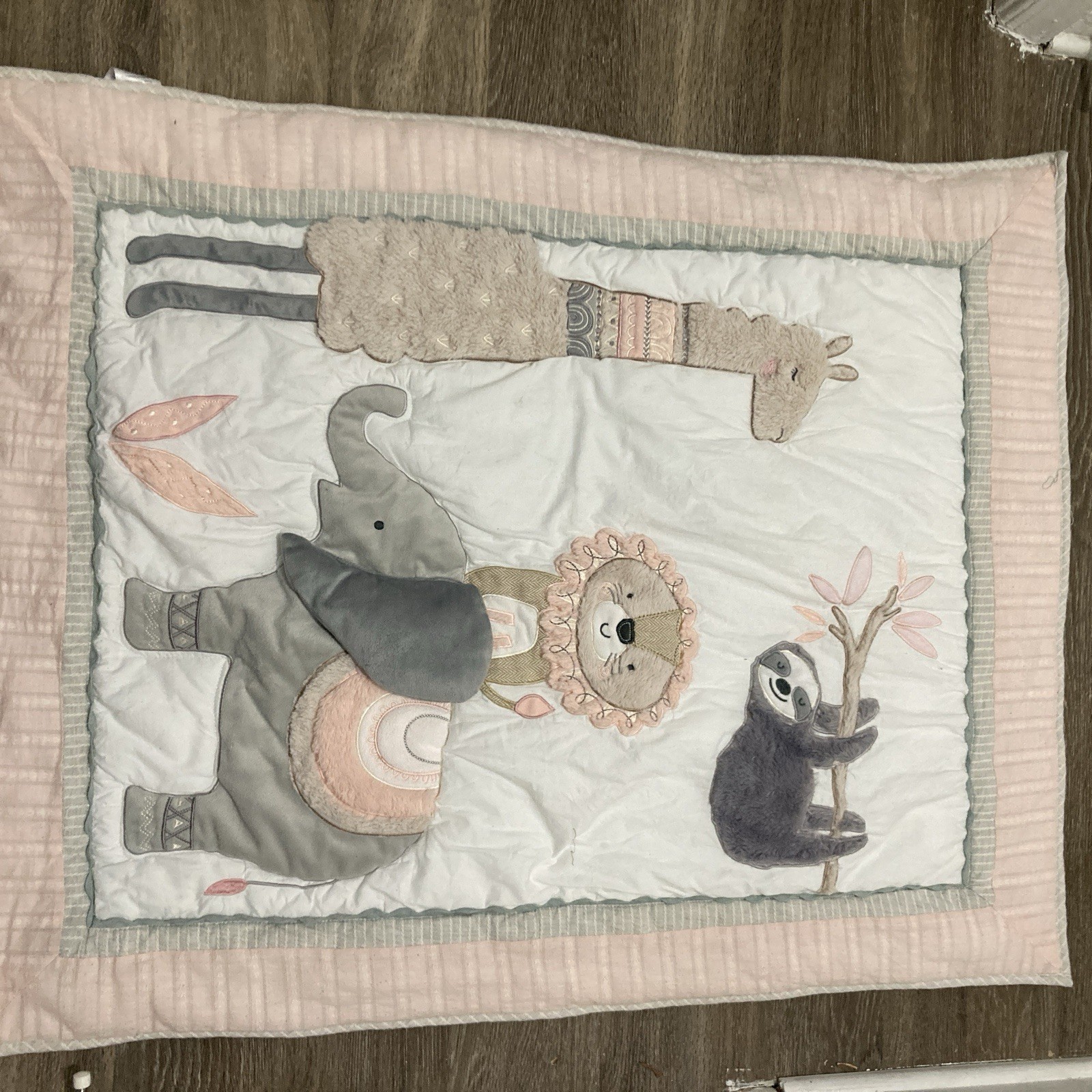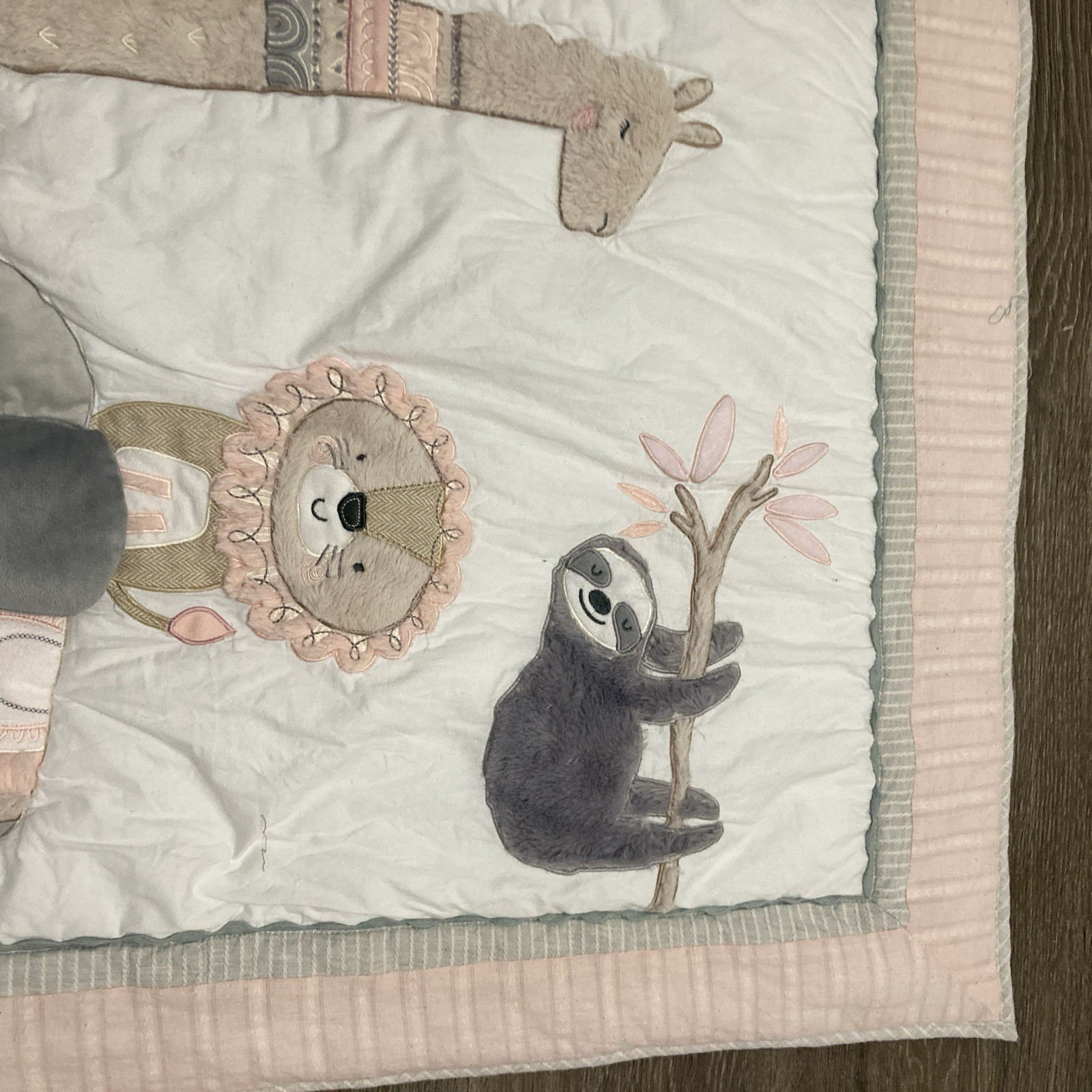 Levtex Baby Imani Crib Comforter Quilt Floral Llama, Sloth animals Pink Grey