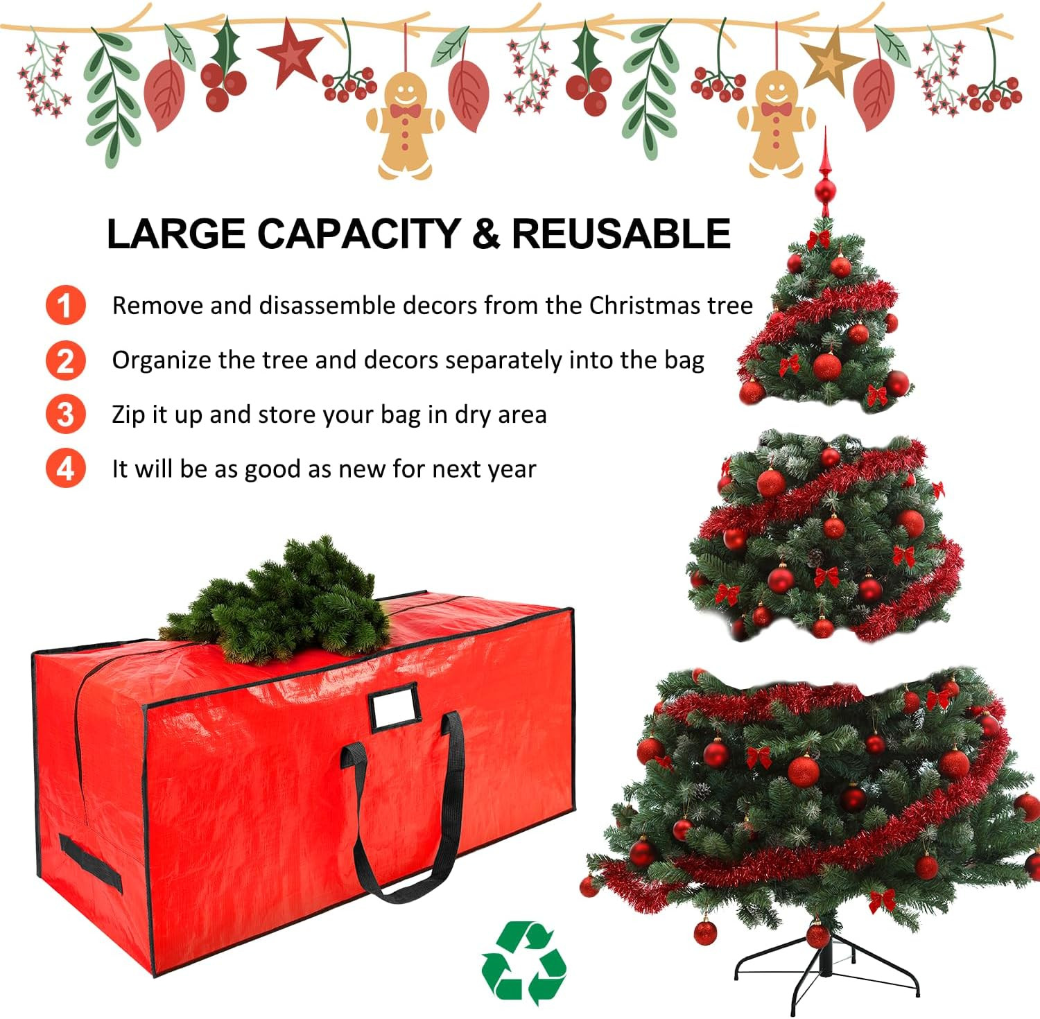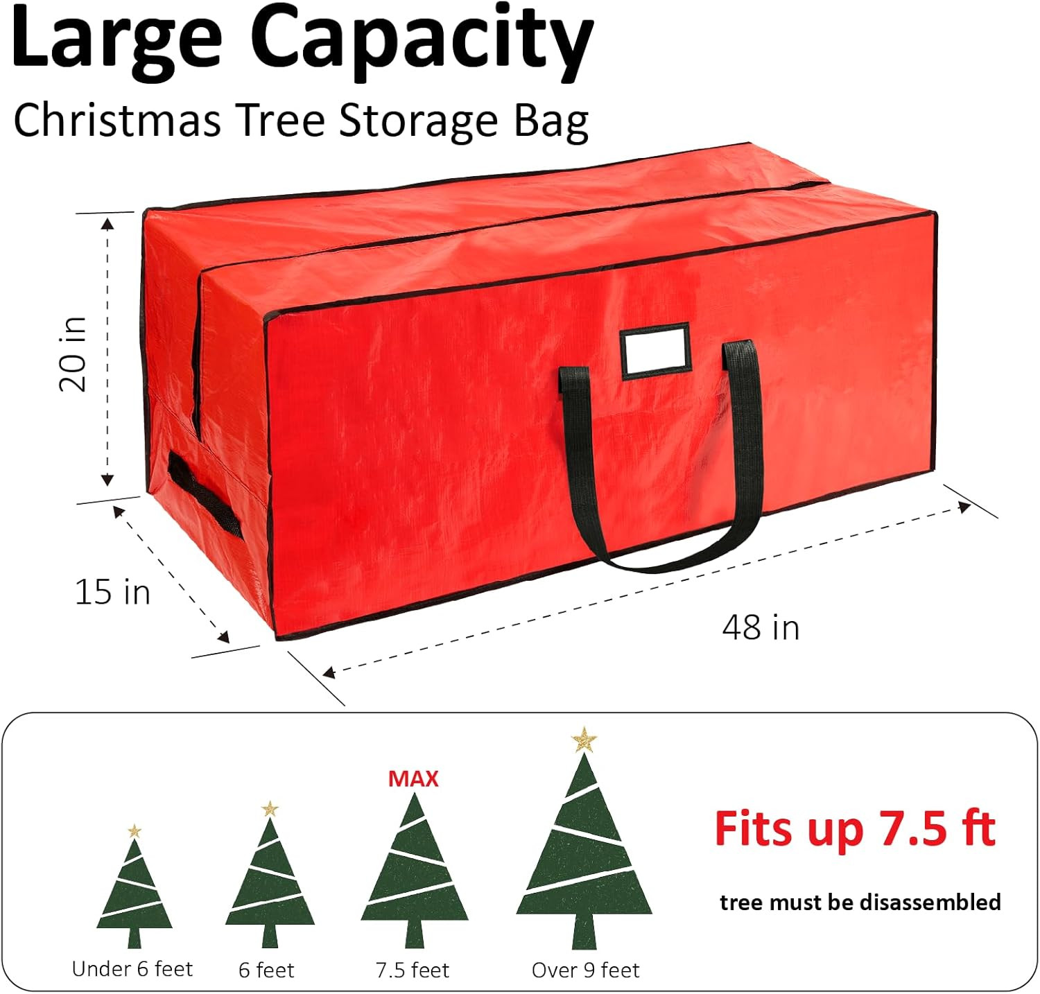 7.5 Ft Christmas Tree Storage Bag - Waterproof with Dual Zippers, Red