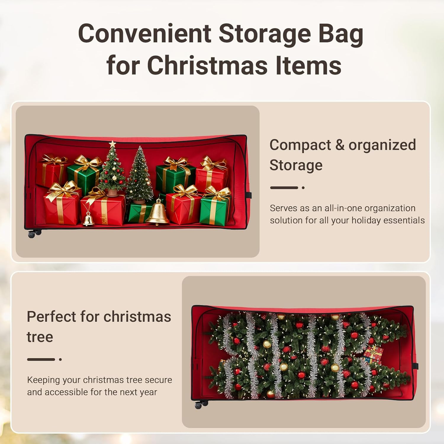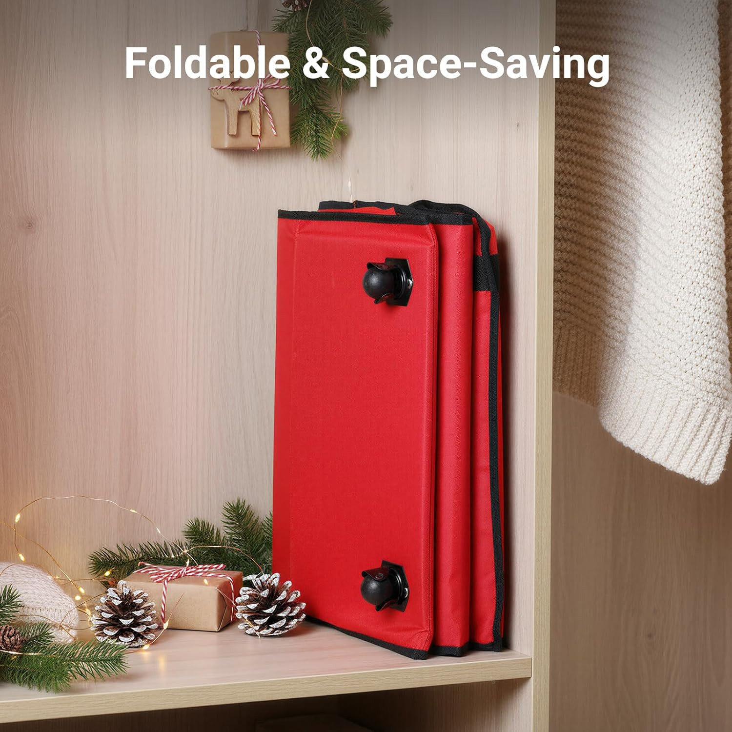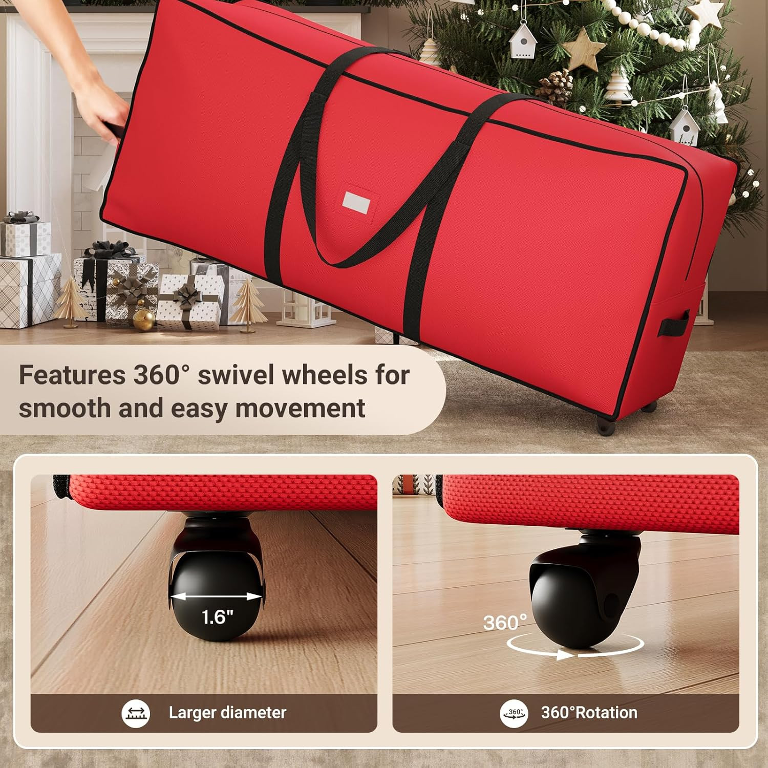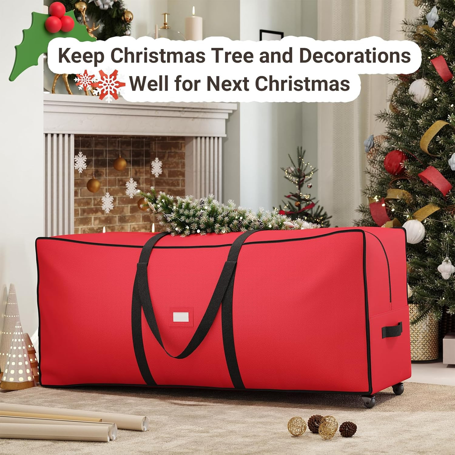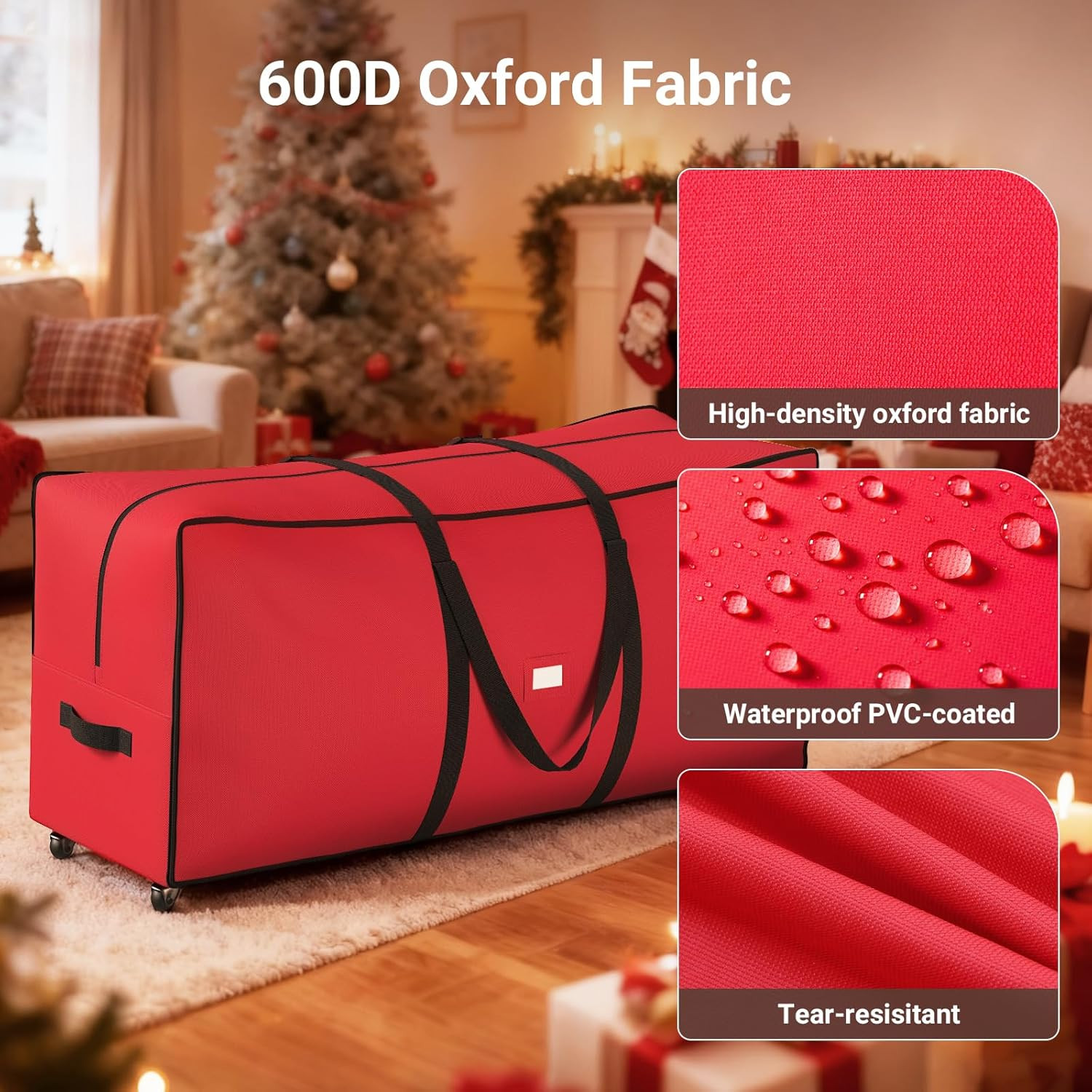 7.5FT Christmas Tree Storage Bag with Wheels, Heavy Duty Oxford Fabric, Red