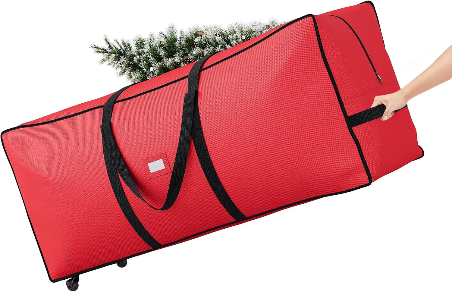 как выглядит 7.5FT Christmas Tree Storage Bag with Wheels, Heavy Duty Oxford Fabric, Red фото