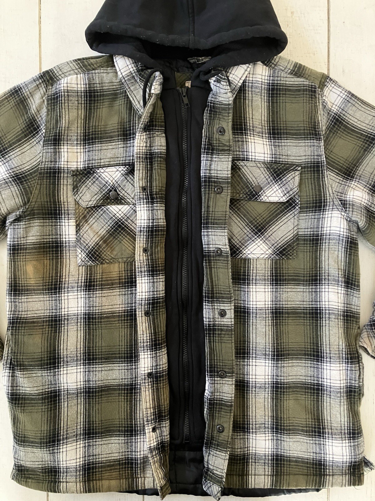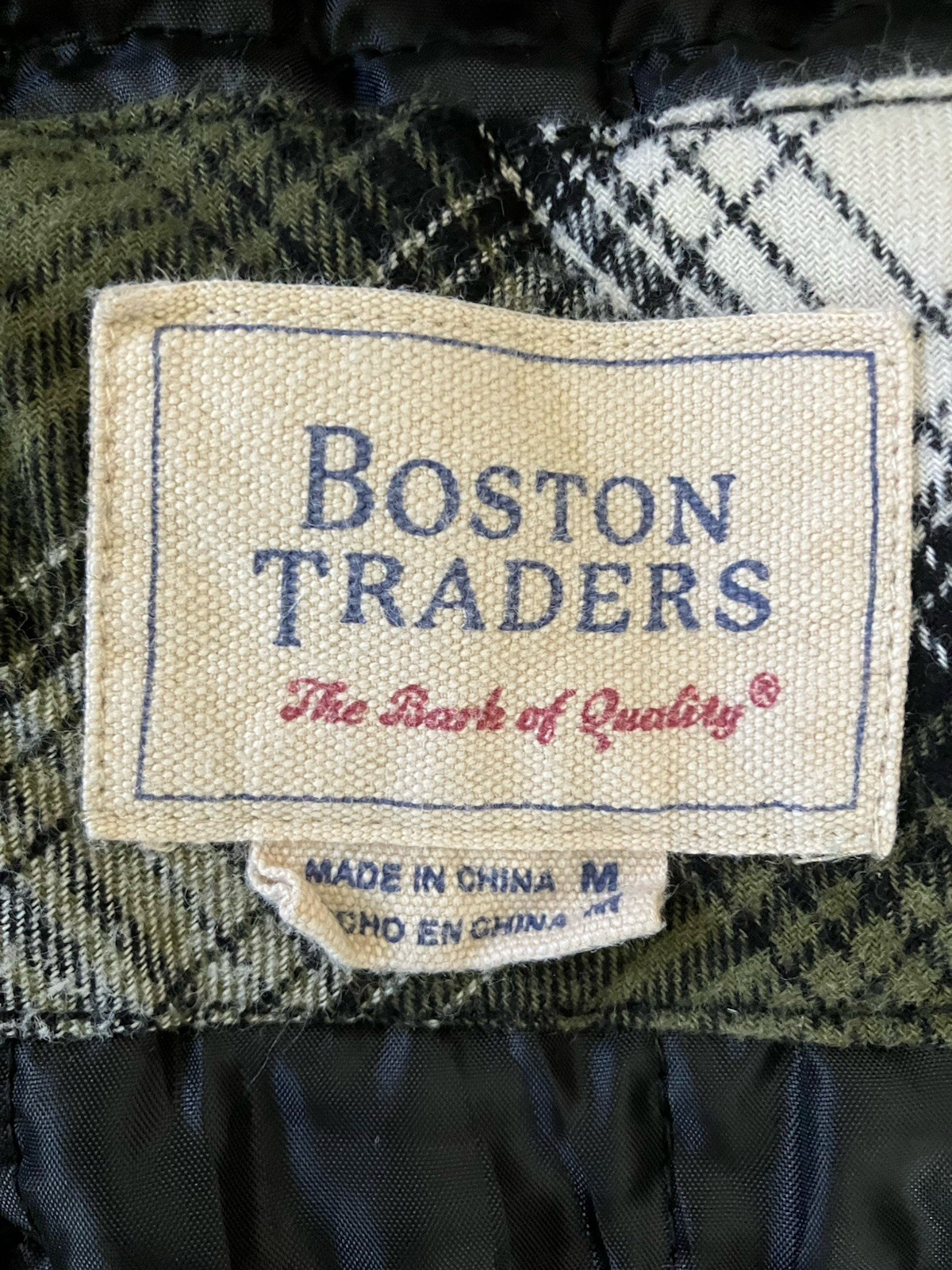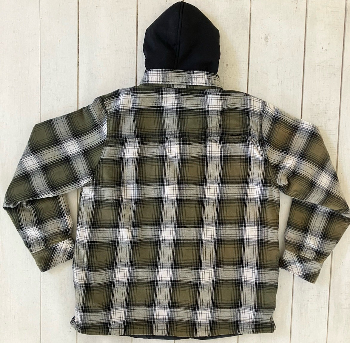 Vintage Boston Traders Quilted Lined Plaid Flannel Hoodie Shacket Jacket M Green