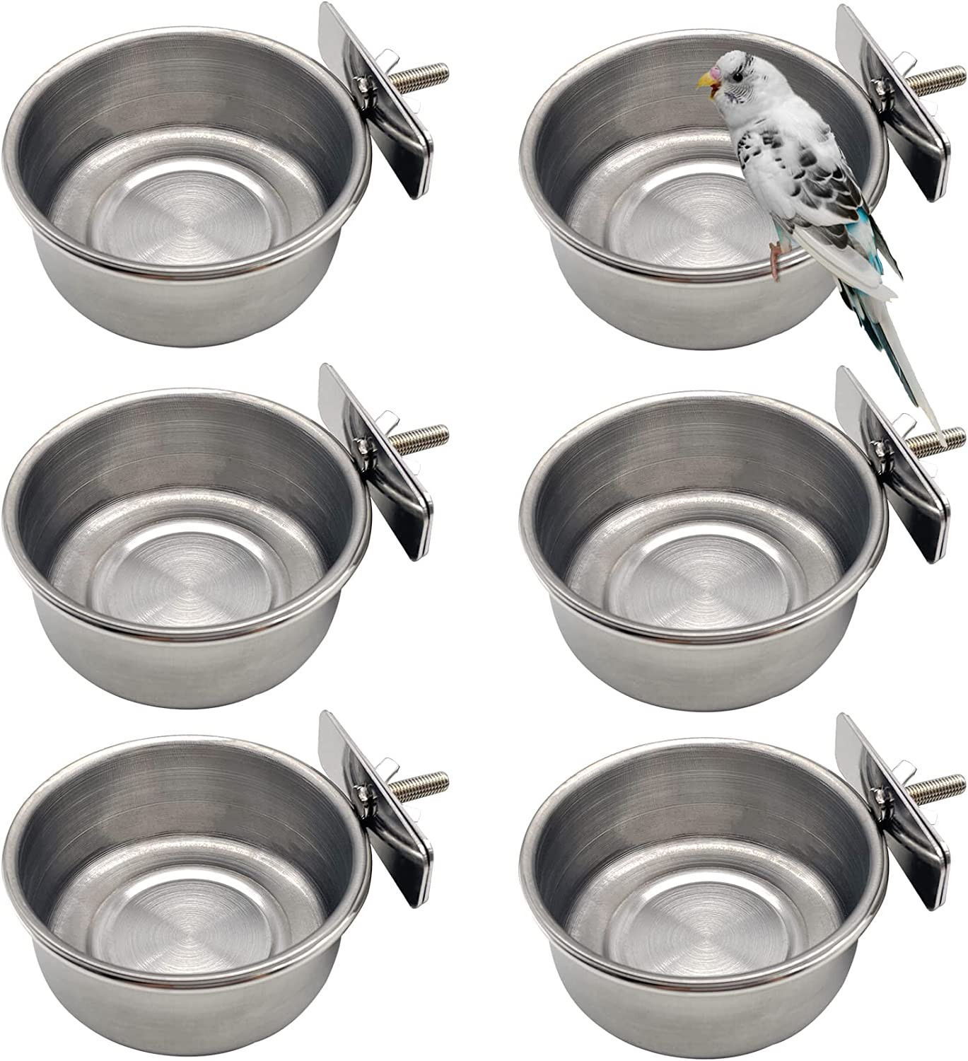 6-Pack Bird Feeding Dish Cups with Cage Clamp Holder for Parrots