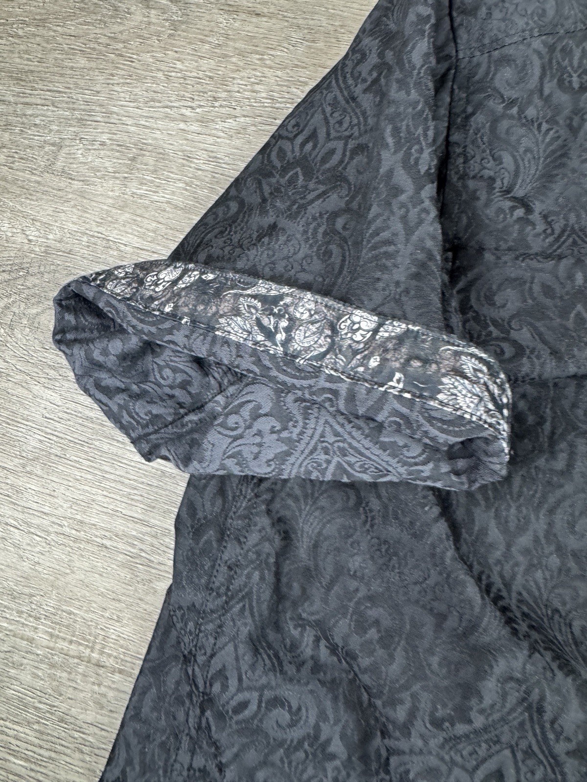 Robert Graham Men's L Classic Fit Short Sleeve Black Paisley Flip Cuff Shirt